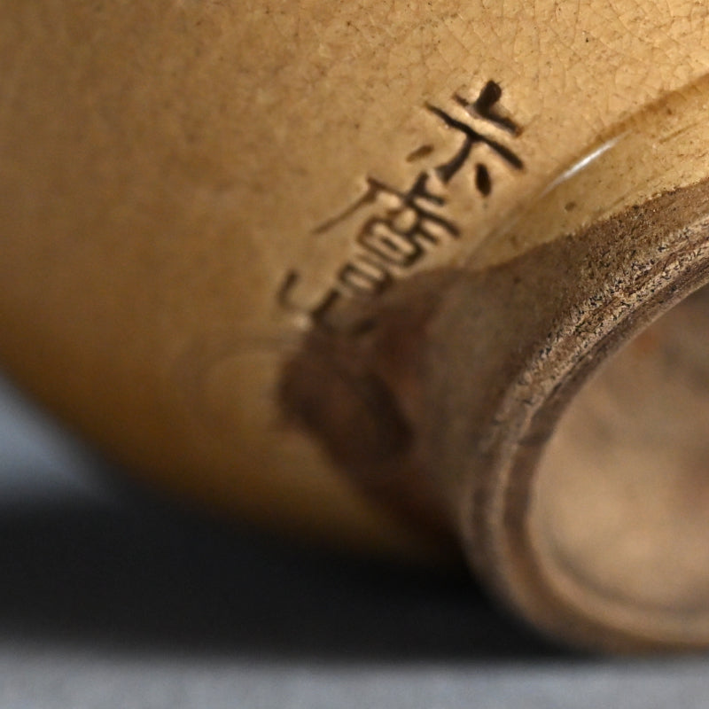 Okuda Mokuhaku (1800-1871) was born the son of a merchant in Sakai Machi Yamato Koriyama in Nara Prefecture that served the local lords with hair ornaments, make-up supplies and other fashionable items. His given name was Kamematsu, which was changed to Sahe-e upon reaching adulthood. He was enthralled with the tea ceremony from a young age, and enjoyed making Raku ware, so it was no surprise later when he quit the family business and became a potter. He established the pottery style known today as Akahada-yaki. With his outstanding design and technical prowess, Akahada pottery came to be highly regarded as utensils for the Japanese tea ceremony, earning him the reputation as a master craftsman of the Edo period who made Akahada pottery known to the world.