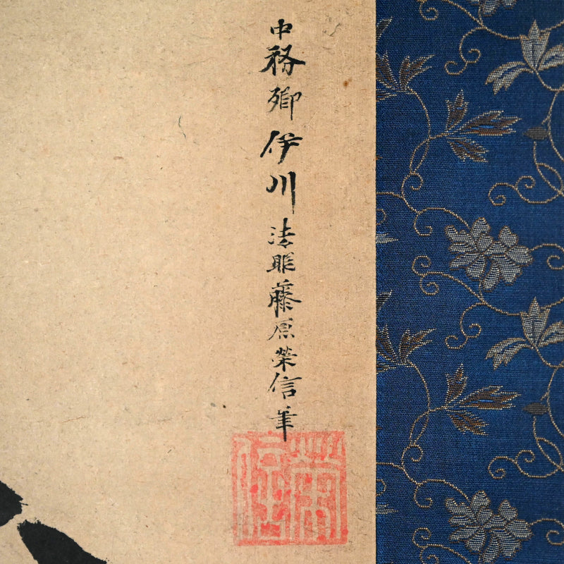Isen was born to Kano Yosen-in, and studied painting under his father, succeeding as 7th head of the Kobikicho branch of the Kano school. He was granted the rank of Hogan in 1802, and that of Hoin in 1816. To quote from Roberts: A painter of considerable talent, following the style of his ancestor Kano Tsunenobu, often working in a free, sketchy manner. He was also capable of very fine colored works rivalling the best of his time, as evidenced by the extreme sensitivity brought forth here in the figures expression. Held in many collections including the Tokyo National, Freer Gallery and Boston Museum.
