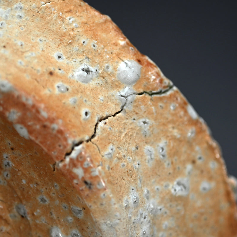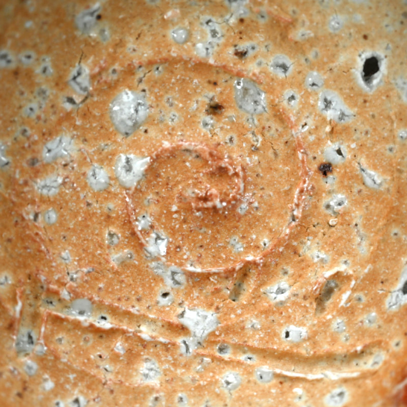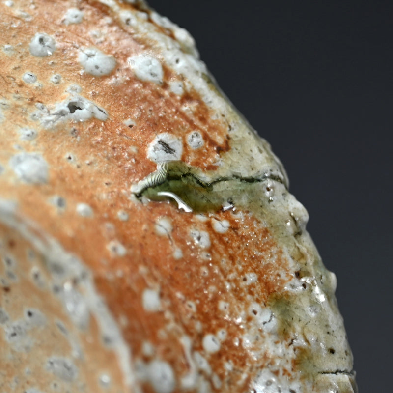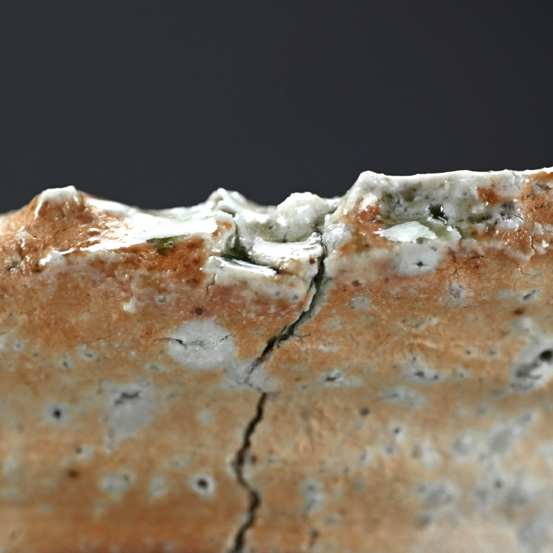 Murakoshi Takuma is one of those enigmas who simply lives to work with clay. He does not seek to make a living through pottery, but through his primal approach has earned a following which keeps his work in high demand. He was born in Aichi prefecture in 1954 and began his stroll down the pottery path in 1980 under the tutelage of Kyoto potter Umehara Takehira. Favoring very rough Shigaraki glaze, he established his own kiln in 1997 in the Kiyomizu pottery district of Kyoto, then moved to Nagaoka in 2002. Although eschewing the world of competitive exhibitions, he has been picked up by many of Japan’s preeminent galleries, including private exhibitions at the prestigious Kuroda Toen of Tokyo’s Ginza District.