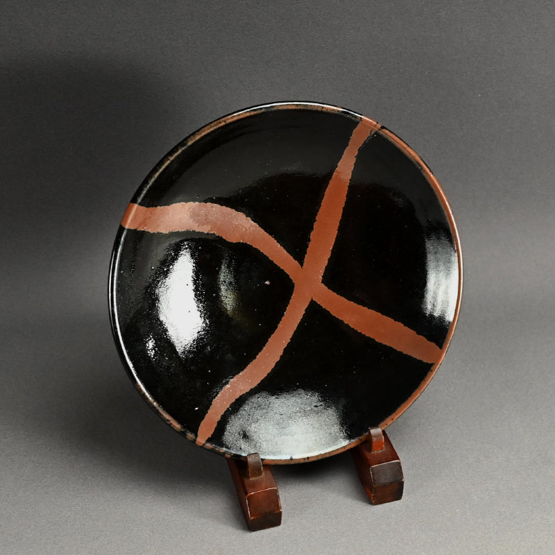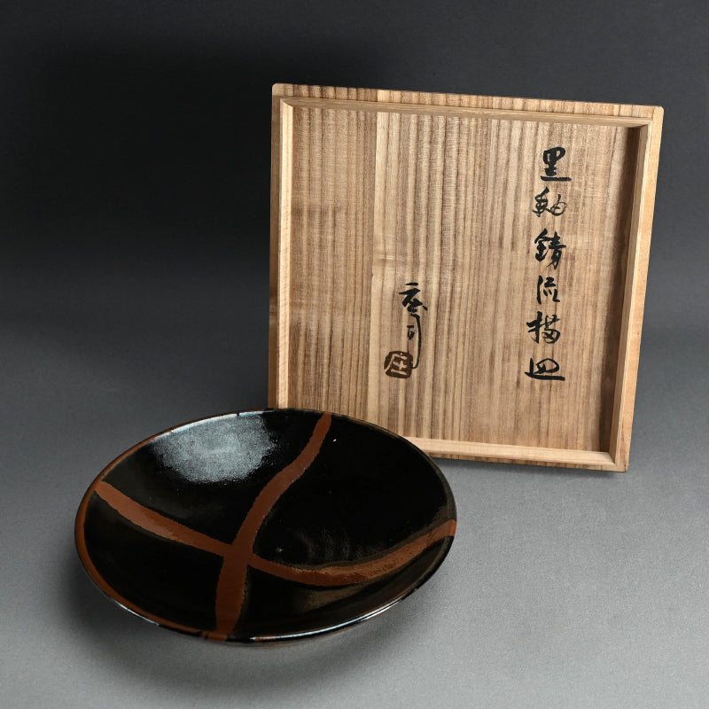 Essential Large Sabi-yu Plate by LNT ー浜田 庄司 “黒釉錆流描皿”