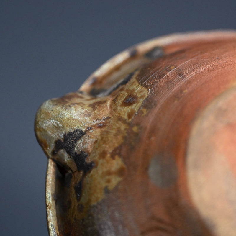 An absolutely breathtaking set of simple ash covered bowls from the turn of the 19th century kilns of Tokoname, the raw earth covered in varying firing effects and blasted with flying ash. They are, unlike the bulk of Tokoname ware, very thinly potted, the rims curling elegantly inward from beneath. To be perfectly honest, one of my favorite finds this year, very unusual. The bowls are 11.5 cm (4-1/2 inches) diameter, 4.5 cm (just less than 2 inches) tall and in excellent condition, enclosed in a period wooden box titled Tokoname Katakuchi Kozara, Gokyaku.