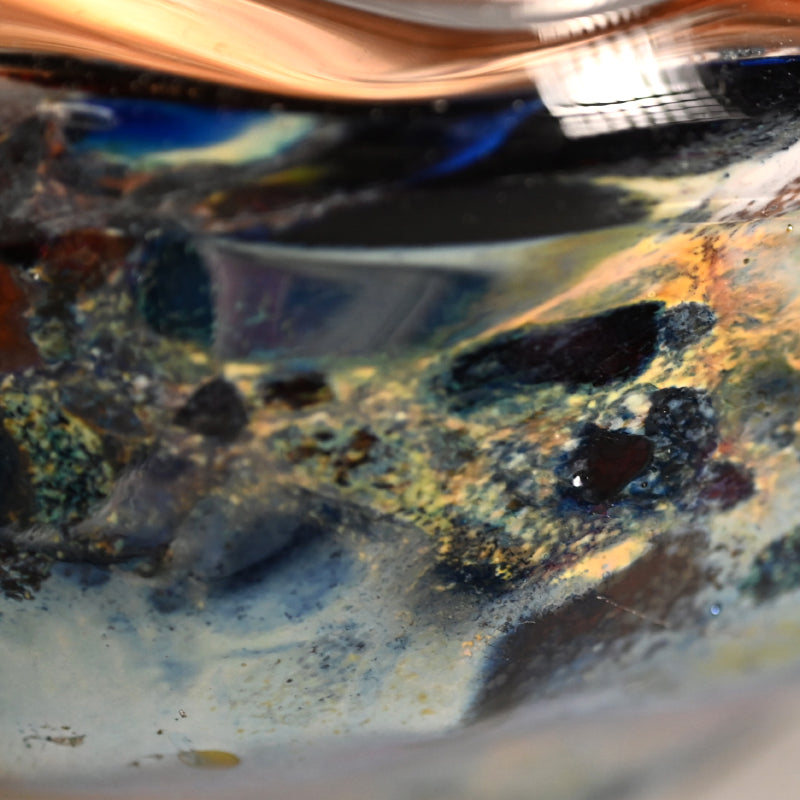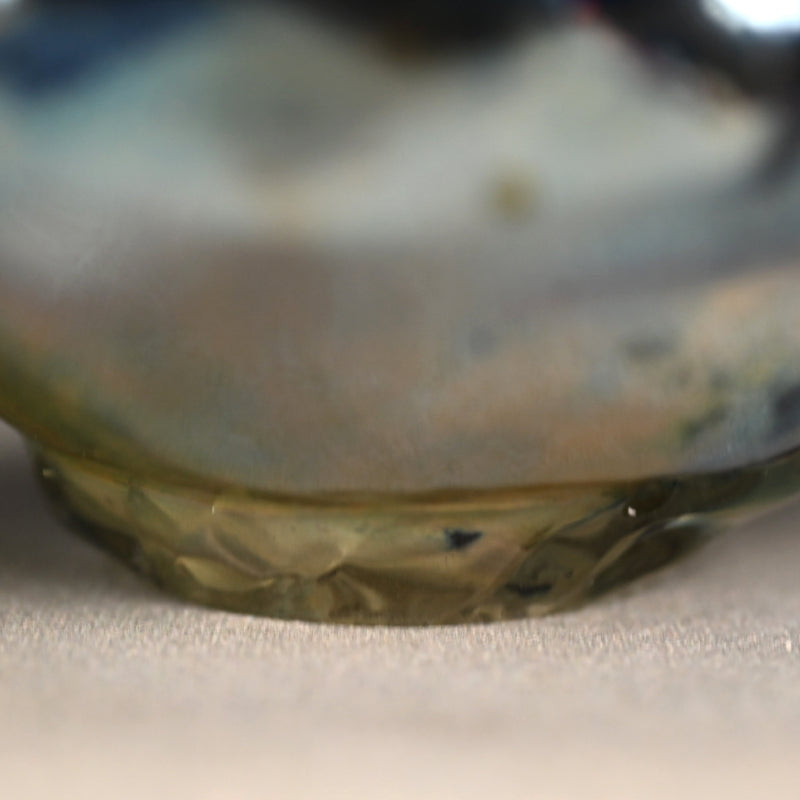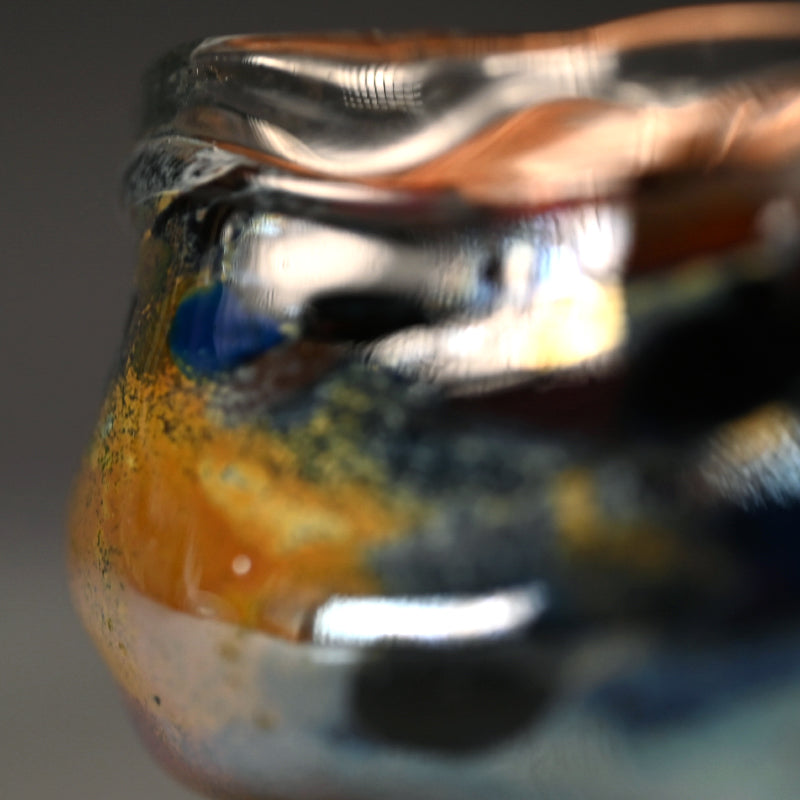 Okushima Keiji was born in Kyoto in 1977, and raised in rural Shiga prefecture just over the mountains from his birthplace. In 2000 he graduated Ritsumeikan University, and entered the Toyama Garasu Zokei Kenkyusho Glass Research Facility, graduating there in 2002. After working in a glass studio for several years, he established his own studio in Shiga in 2010. Since he has focused on the world of private exhibitions as his preferred venue. That said, he has been accepted into the Glass Craft Triennale in 2010, the National Craft Exhibition (Nihon Kurafuto Ten) in 2011, and received the Iwata prize at the Tableware Taishoten in 2012. 2013 saw his work in display in the Lansing At Gallery (US) and in Korea where he would be seen again in 2014 and 2015. From 2016 to 2019 his list of exhibitions is impressive, including exhibitions throughout Japan as well as New York and Korea.