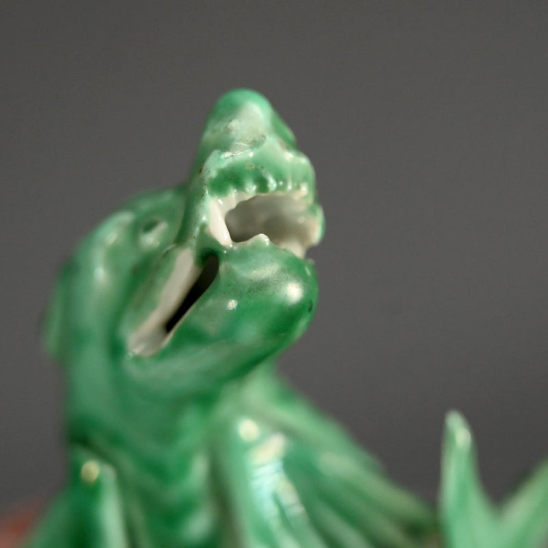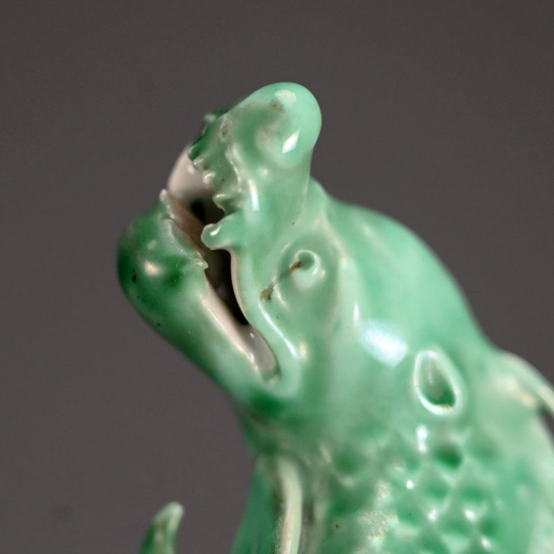 A leaping Shachi Dragon-fish peaks this delicate porcelain censer by Miura Chikusen enclosed in the original signed wooden box. It is 10.5 cm (4 inches) diameter, 15 cm (6 inches) tall, signed on the base, and in excellent condition.