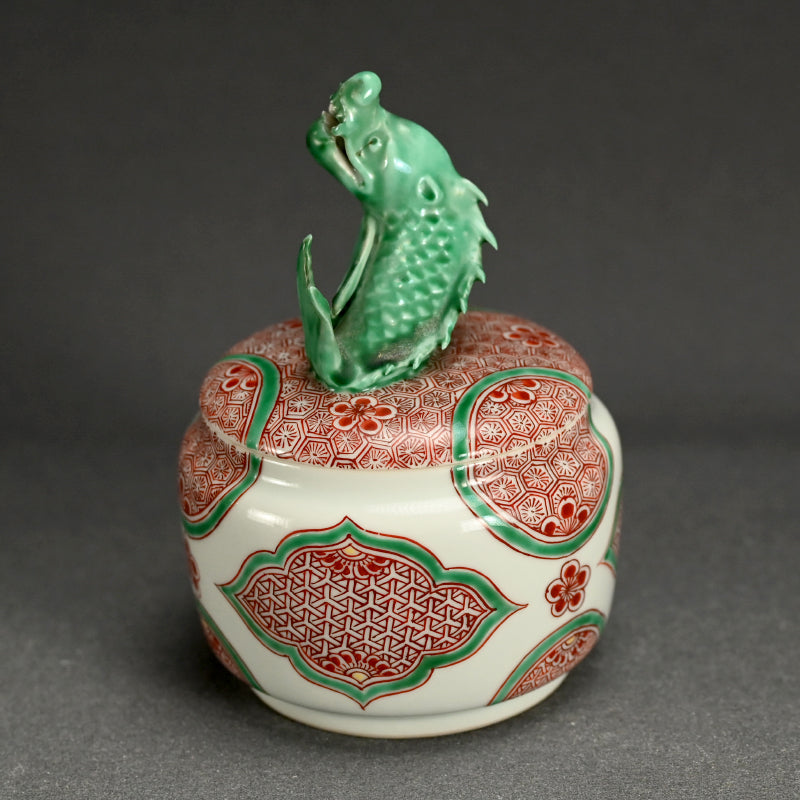Exquisite Koro Incense Burner ー三浦 竹泉 "着彩釉紐 有葢香炉"