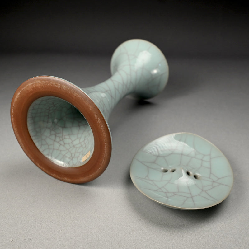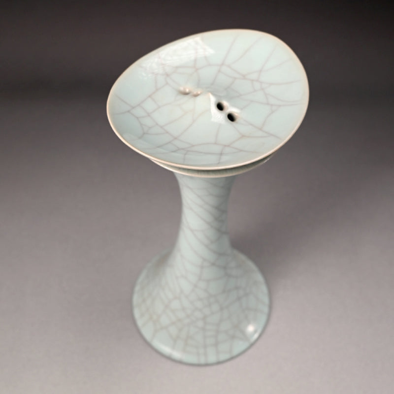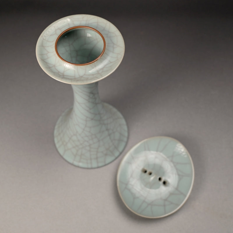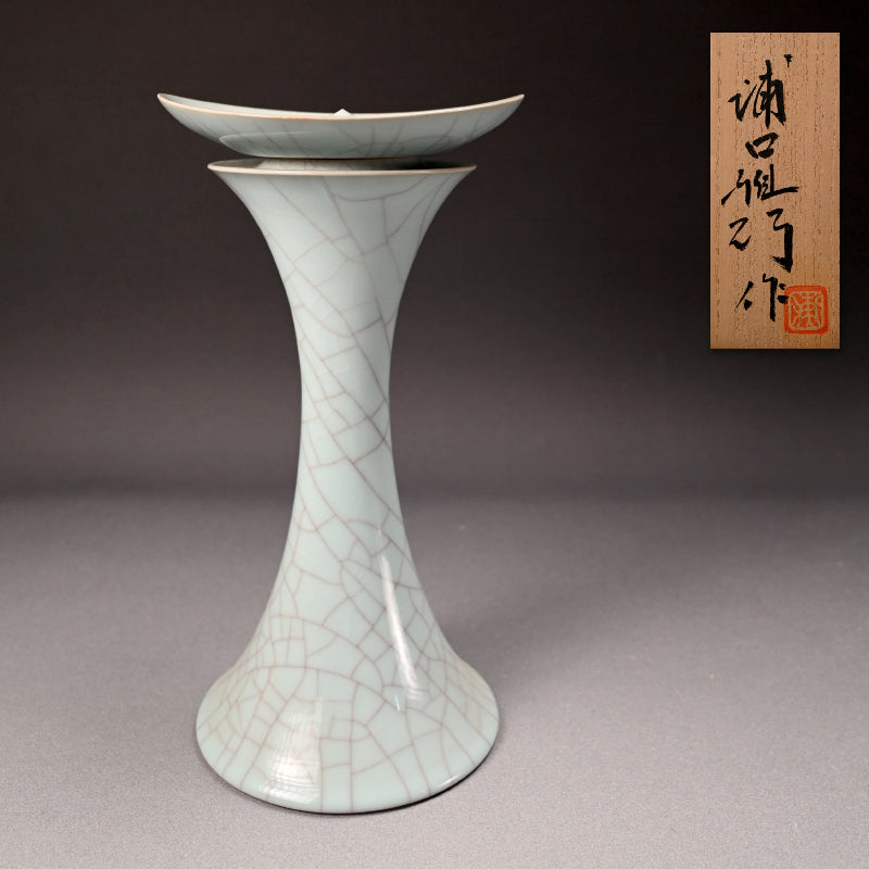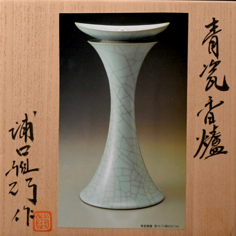 Exquisite Tall Celadon Koro ー浦口 雅行 "青瓷香爐"