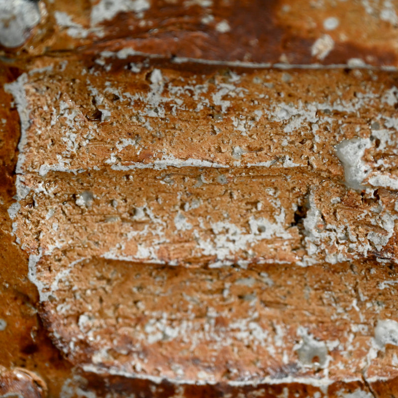 Murakoshi Takuma is one of those enigmas who simply lives to work with clay. He does not seek to make a living through pottery, but through his primal approach has earned a following which keeps his work in high demand. He was born in Aichi prefecture in 1954 and began his stroll down the pottery path in 1980 under the tutelage of Kyoto potter Umehara Takehira. Favoring very rough Shigaraki glaze, he established his own kiln in 1997 in the Kiyomizu pottery district of Kyoto, then moved to Nagaoka in 2002. Although eschewing the world of competitive exhibitions, he has been picked up by many of Japan’s preeminent galleries, including private exhibitions at the prestigious Kuroda Toen of Tokyo’s Ginza District.