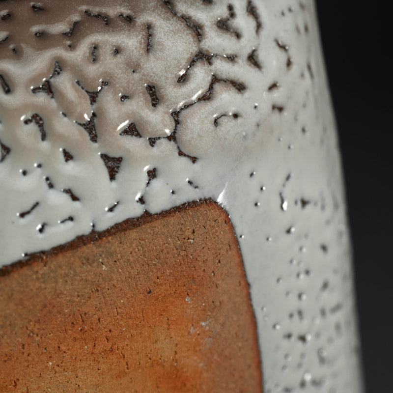 Miwa Eizo (1946-1999) was born the second son of Living National Treasure Miwa Kyusetsu XI. He graduated the Private Musashino Art University and was a member of Japanese Traditional Crafts Society, often displayed at their National Exhibition (Nihon Dento Togeiten). He was recipient of top prize at the Tanabe Museums prestigious Modern Tea Forms Exhibition (Gendai Cha no Yu Zokei Ten). ). Unfortunately, he died in 1999 at the early age of fifty two. His brother Ryosaku succeeded the family name as Miwa Kyusetsu XII. He is held in the collection of the British Museum and The National Museum of Modern Art in Tokyo among others. For more on this artist see the book: The Ceramic Works of Eizo Miwa (2001) published posthumously by the preeminent Kuroda Toen art gallery of Tokyo.