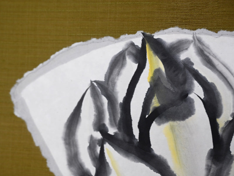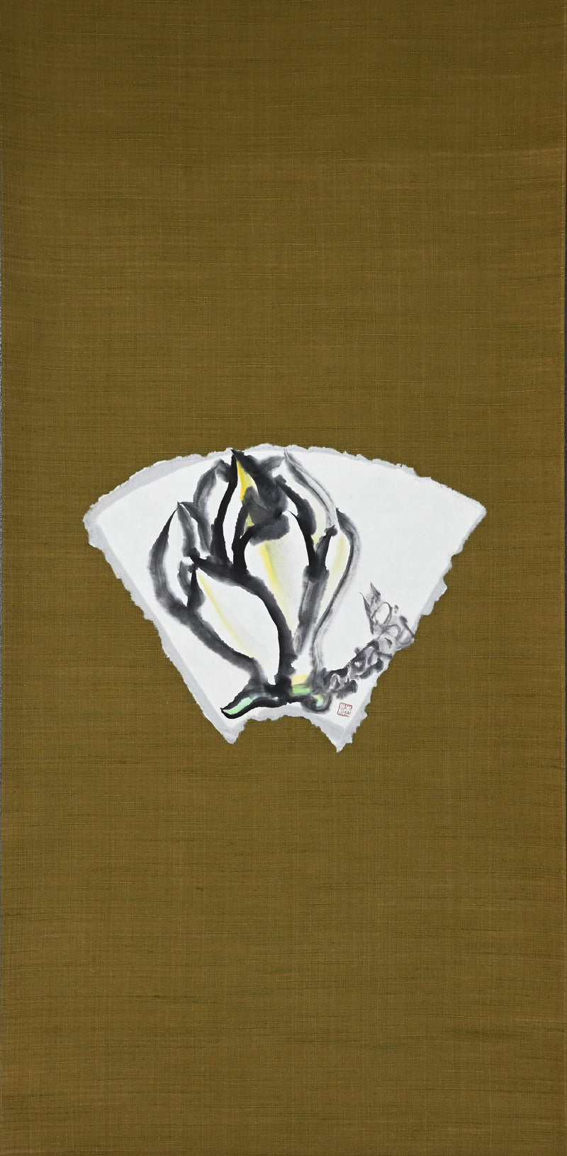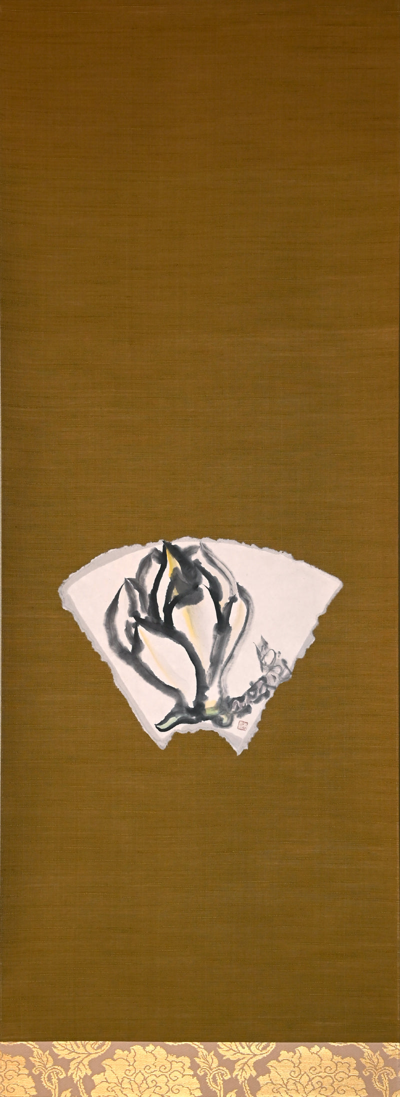 Fan Scroll with White Flower ーのむら 清六 "白い花"