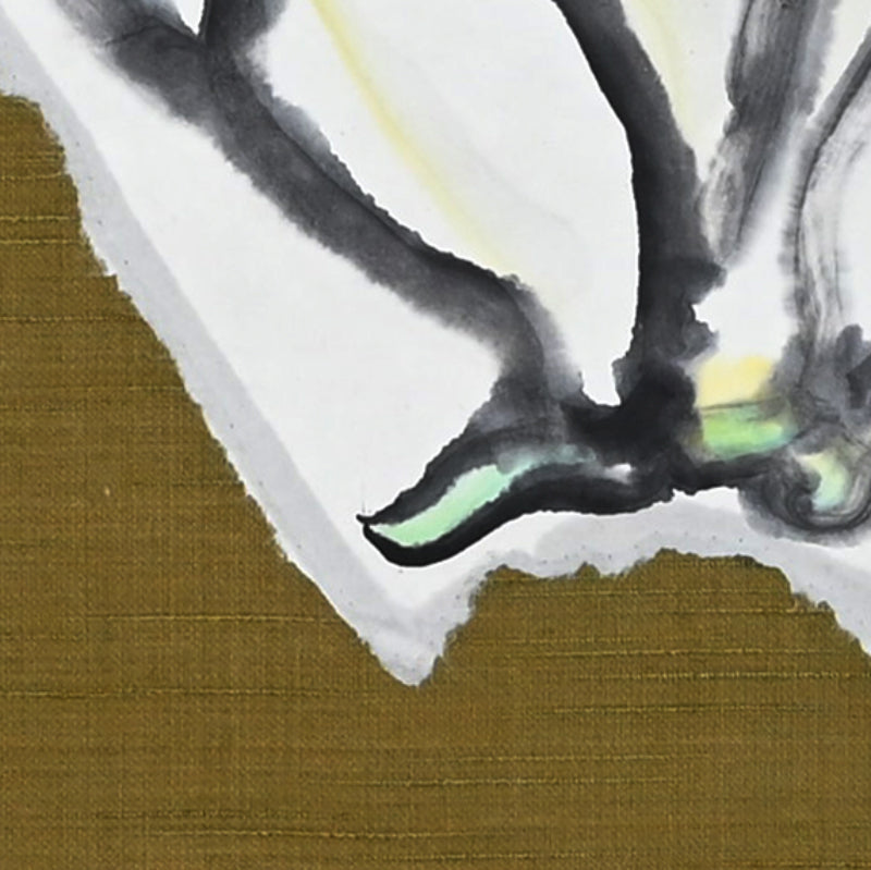 Nomura Seiroku was born in 1916 as the fourth son of a farming family in Yamanashi Prefecture. During his childhood, he was entrusted to relatives and spent his time drawing late into the night while working at a cotton mill. At the age of 17, he persuaded his parents and relatives to let him move to Tokyo, where he took on various jobs while attending the night school at Kawabata Art Academy where he formed lifelong friendships with other painteers such as Iwasaki Hajin, Komatsu Hitoshi, and Taniguchi Sango. He sought mastery of the Tsuketate technique. which involves using a rough brush held vertically to create a strong brushstroke that carves the framework of the painting without sketching.In 1943, Seiroku was drafted into the Yokosuka Navy. Around the same time, he married Tokiko Nomura, a daughter from an old family in Komatsu City, Ishikawa Prefecture, whom he had met during his art school days. As a result, he adopted the Nomura surname. In the early years of their marriage, Seiroku had little income, so in 1951, at the age of 35, he made a decisive move to focus on his artistic direction. He left his family and relocated to a cabin by Shibireko Lake in Yamanaka, Yamanashi Prefecture. There, he spent four ascetic years perfecting his "Tsuketate" technique. During this period, Nomura began creating cover illustrations for the haiku magazine "Kira" and held his first solo exhibition in Yamanashi Prefecture. He also showcased his works at various exhibitions, including the Shinseisaku Art Society Exhibition and the Japan Independent Exhibition. In 1955, after returning to his family in Komatsu City, he moved his studio to Kashiwa City, Chiba Prefecture, to facilitate exhibitions and negotiations with art dealers in Tokyo. In the 1960s, Nomura produced outstanding works using flat and thick painting techniques. From the 1970s onwards, his brushwork became more free and spontaneous, and he began incorporating his own haiku into his paintings, evolving towards a more literati painting style. Work by him is held in the Tokyo National Museum of Modern Art, the Wakayama Prefectural Museum of Art and the Yamanashi Prefectural Museum of Art where a major retrospective was held in 2000.