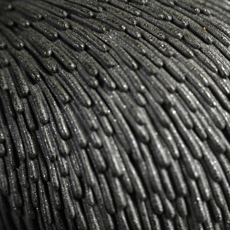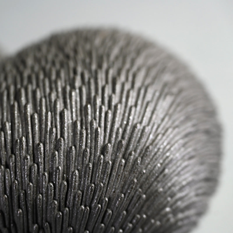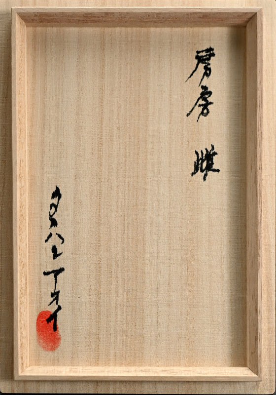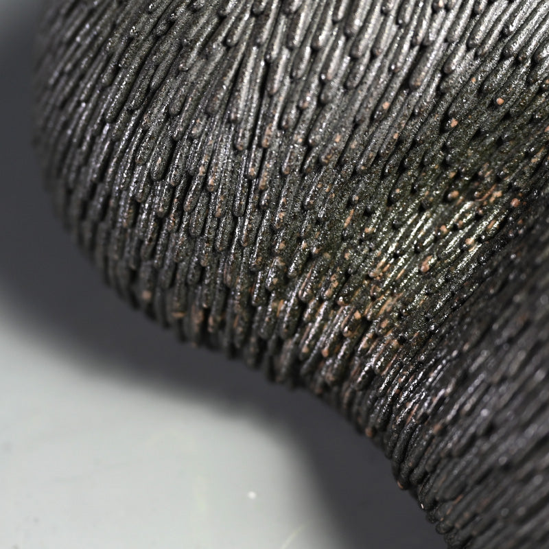 A striking sculpture in black clay by the young wave maker and rising female pottery star Takahashi Aoi enclosed in the original signed wooden box titled “FEMALE”. The organic form is covered in hundreds of black clay tendrils, each hand formed and individually applied by hand in a flowing pattern. It is 20.5 x 13 x 8.5 cm (8 x 5-1/2 x 3-1/2 inches) and is in perfect condition, directly from the artist this winter.
