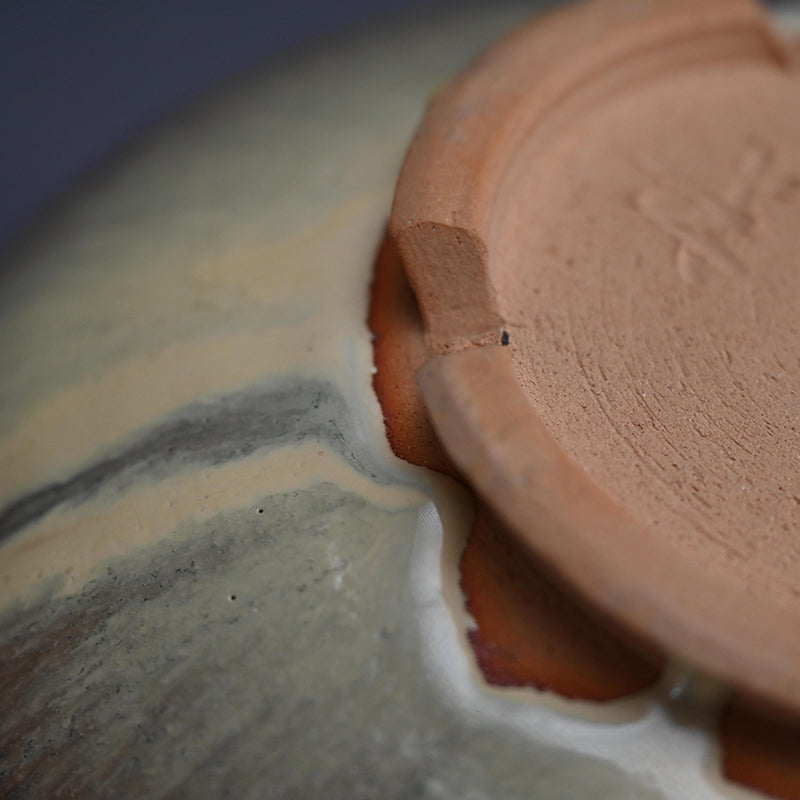 Richard Milgrim (b. 1955) of White Plains New York graduated Antioch College in 1979 following a year travelling in Japan and internship at the Fogg Museum of Harvay rd.  That same year he began down a path, following a “way” as it is called in Japan, Sado or Chanoyu, the Japanese Tea Ceremony.  That same year he returned to Japan, apprenticing initially under Iwabuchi Shigeya while studying at the Midorikai of Urasenke.  His first solo exhibition was held in 1981, one of many, and he subsequently began to move about Japan, gobbling up styles under various masters such as Living National Treasure Fujiwara Yu, Kato Koemon and Tahara Tobei.  He established his own kiln in Hiyoshi, North of Kyoto in 1984.  He is probably the only foreign potter to be truly accepted into the brand conscious world of Japanese tea, and his shows frequently sell out early.  From 2000 to 2014 he spit his time between Hiyoshi and a kiln he established in Concord Massachusetts, where he developed some innovative techniques and glazes now firmly a part of his repertoire in Japan.  He is adept therefore with Shino, Oribe, Bizen, Seto, Karatsu and Yakishime styles.  According to Richard “Since 1977 on my first arrival in Kyoto, I have been blessed with an unending flow of "deai" (encounters) that have almost been like stepping stones on the garden path, leading me into the innermost depths of the field of "Chatou" (tea ceramics).Undoubtedly the most significant "deai" was meeting Dr. Sen Genshitsu (the former 15th generation Grand Master of the Urasenke Tea Tradition), in 1979. With his guidance and endorsement over the years, including the naming of my 2 studios in both Japan-RICHADO-GAMA, and America- KONKO-GAMA, Dr. Sen has been the primary catalyst in the development of my career over the past 40 years.”