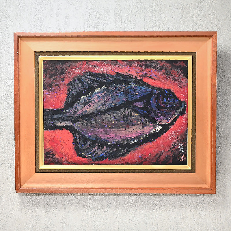 Frantic Framed Nihonga Painting of a Flounder ーのむら 清六 "カレイ図"