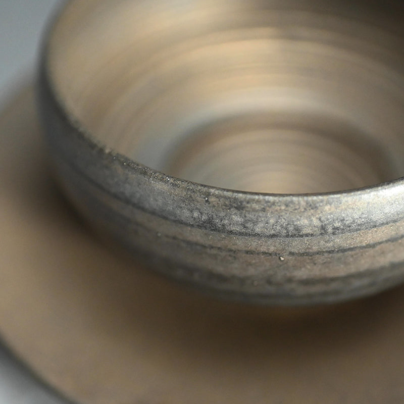 Matsushita Hiroki (1977–2024) was born in Kitakyushu, Fukuoka Prefecture and encountered clay early in life, an engagement that deepened through formal study and culminated in a Doctorate in Fine Arts from Kyushu Sangyo University in 2009. His research on the Kakiemon style, conducted under the guidance of the Fourteenth-generation Sakaida Kakiemon and supported by the Ministry of Education’s 21st Century COE Program, placed him in direct dialogue with one of Japan’s most refined ceramic traditions. In 2017, he founded the studio-gallery Utsuwa Tsunagi (“vessels that bind”), reflecting his conviction that ceramics serve as quiet agents of human connection. Selected for the National Artists Exhibition at the Uenomori Art Museum in 2021, his career was marked by steady expansion and a sustained commitment to refinement. His works—often bearing metal-like surfaces tempered by warmth—embody a balance of rigor and grace, vessels shaped not only by discipline but by a gentle hand. Matsushita passed away in 2024. His loss is deeply felt, yet his spirit endures in the vessels he formed—objects that continue to accompany daily rituals with quiet gravity, inviting pause, touch, and connection.