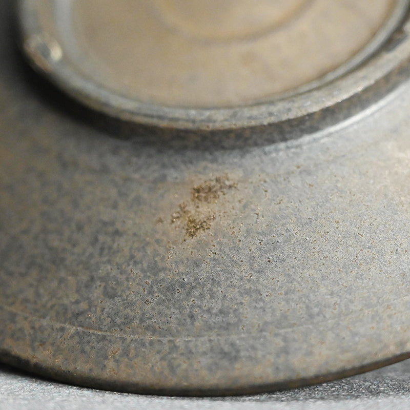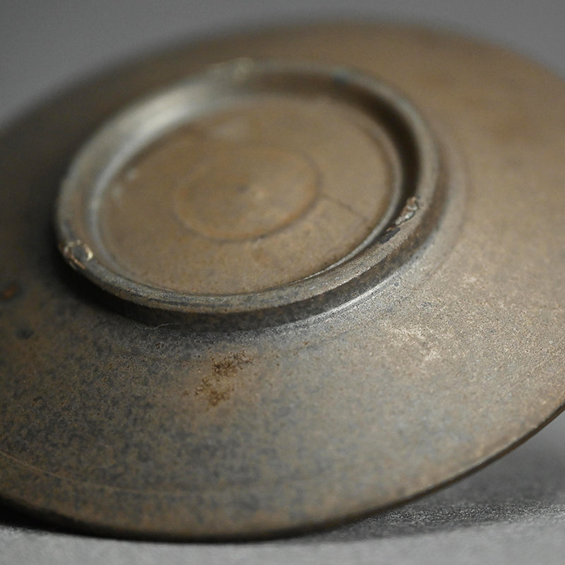 A sake cup and small dish from Matsushita Hiroki’s popular “Fugen Series,” offered together as a set for drinking sake with a small snack, (or doubling as a sencha tea cup and saucer). Designed for an intimate evening drink, the pieces feature the clean, stylish forms characteristic of Matsushita’s work. I can easily imagine pairing them with chilled sake and a simple accompaniment—cheese, pickles, or another small bite. Despite their simplicity, his pieces carry a quiet strength and unwavering presence. The set comes housed in an original wooden box titled Fugen Guinomi to Mame Zara. The sake cup measures 7.5 × 4 cm (3 × 1 1/2 inches), and the small dish 10.8 × 1.7 cm (4 1/4 x 3/4 inches).