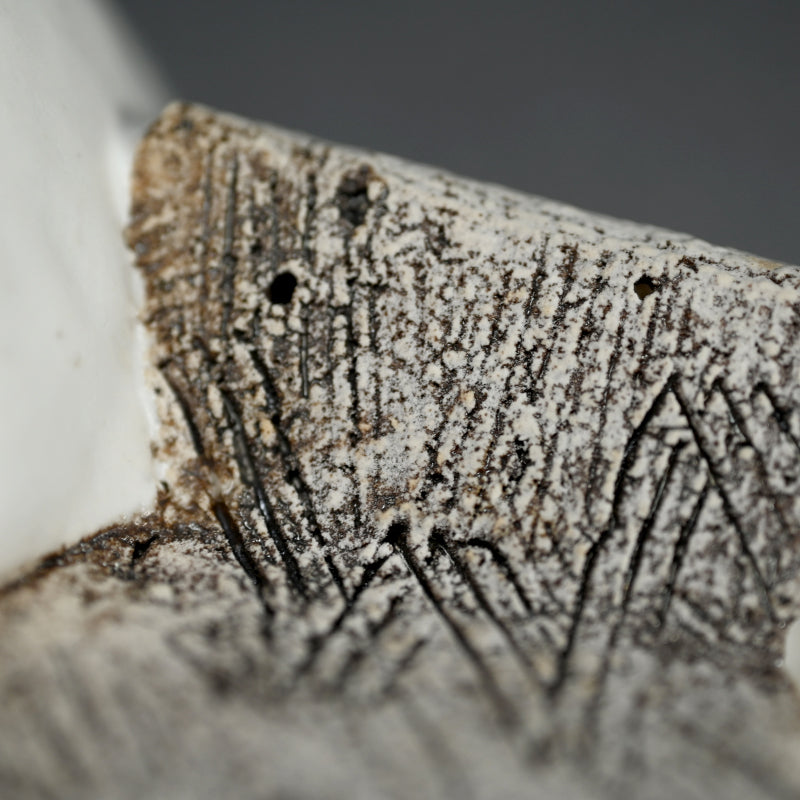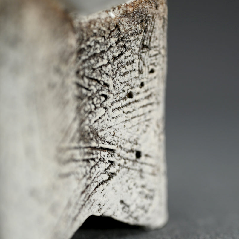 A guinomi on a tall pedestal in white by female artist Koike Shoko enclosed in the original signed wooden box titled Shiroi no Katachi (White form). It is 8 cm (3 inches) diameter, 6.8 cm (2-1/2 inches) tall and in excellent condition.