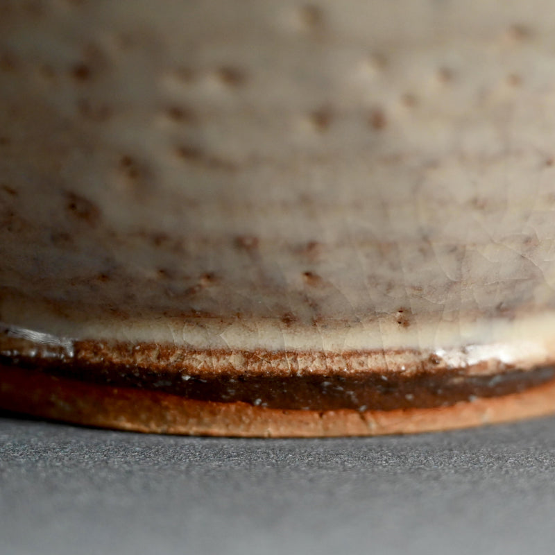 Miwa Eizo (1946-1999) was born the second son of Living National Treasure Miwa Kyusetsu XI. He graduated the Private Musashino Art University and was a member of Japanese Traditional Crafts Society, often displayed at their National Exhibition (Nihon Dento Togeiten). He was recipient of top prize at the Tanabe Museums prestigious Modern Tea Forms Exhibition (Gendai Cha no Yu Zokei Ten). Unfortunately, he died in 1999 at the early age of fifty two. His brother Ryosaku succeeded the family name as Miwa Kyusetsu XII. He is held in the collection of the British Museum and The National Museum of Modern Art in Tokyo among others. For more on this artist see the book: The Ceramic Works of Eizo Miwa (2001) published posthumously by the preeminent Kuroda Toen art gallery of Tokyo.