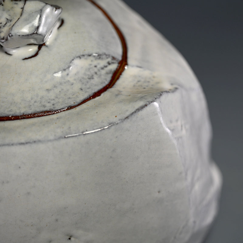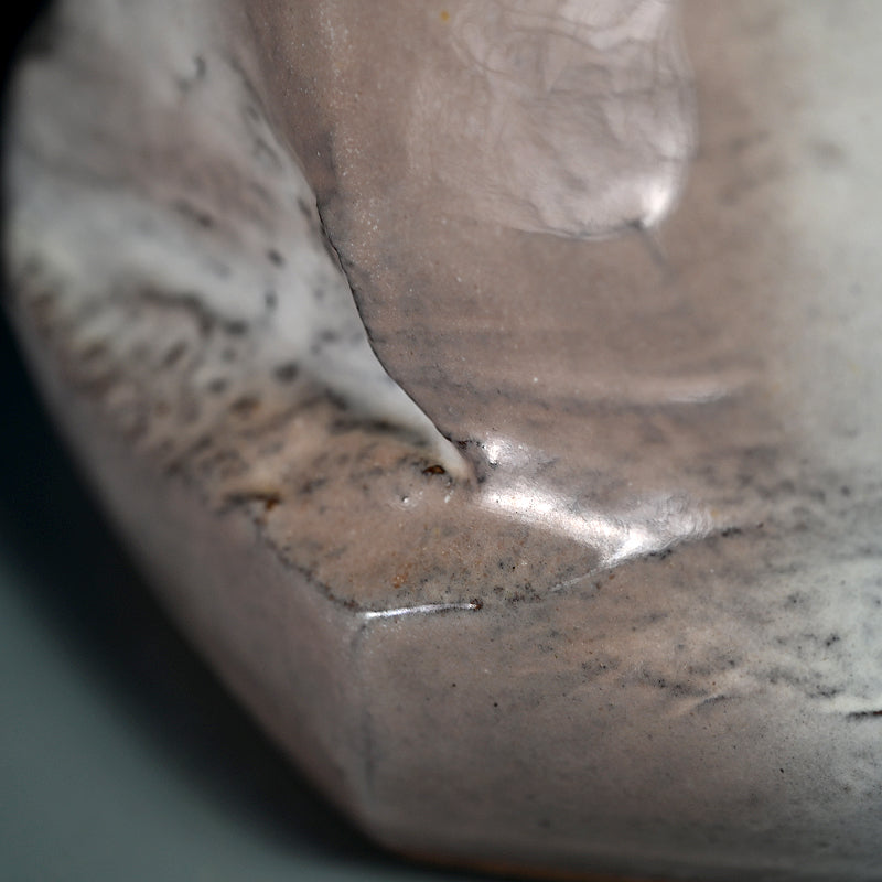 Kaneta Masanao is certainly one of Hagi’s most well-known and easily identifiable names. Born the first son of Kaneta Sanzaemon, the 7th generation of a family of traditional Hagi potters in 1953, he graduated the Tokyo University of Education Sculptural Art department in 1977. For the following 3 years he exhibited sculptures with the Kokuga-ten Exhibition while attending advanced education at Tsukuba University before returning to work under his father in Hagi in 1979. Although an eighth-generation potter inheriting an overtly conservative tradition, he has transcended limitation, and was one of the first to begin carrying Hagi into the 21st century. His work evokes a distinct tension between both function and form, technique and tradition. He began exhibition with the National Ceramics Exhibition (Nihon Togeiten) and National Traditional Crafts Exhibition (Nihon Dento Kogei ten) in 1981, and has been much awarded at both venues. His first international exhibition was held in New York in 1995. He was awarded the Yamaguchi Prefectural Order of Cultural Merit in 2004, and succeeded as head of the family kiln the following year. His pieces are in the collection of the Tokyo National Museum of Modern Art, the Museum of Modern Ceramics in Gifu, Yamaguchi Prefectural Museum and Museum of Modern Art, the Asian Art Museum in San Francisco, the Brooklyn Museum, the Metropolitan Museum in New York and the Museum of Art in Philadelphia among others.