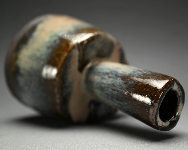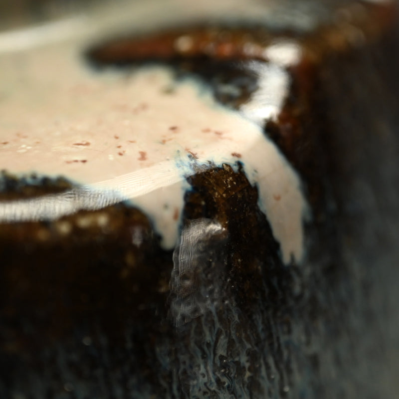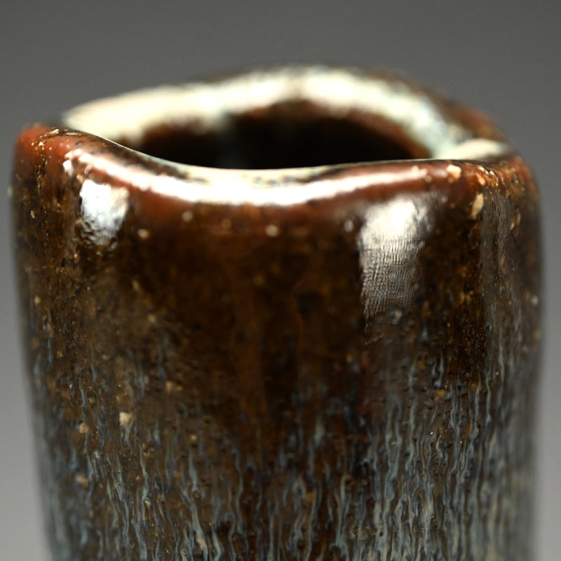 Kaneta Masanao is certainly one of Hagi’s most well-known and easily identifiable names. Born the first son of Kaneta Sanzaemon, the 7th generation of a family of traditional Hagi potters in 1953, he graduated the Tokyo University of Education Sculptural Art department in 1977. For the following 3 years he exhibited sculptures with the Kokuga-ten Exhibition while attending advanced education at Tsukuba University before returning to work under his father in Hagi in 1979. Although an eighth-generation potter inheriting an overtly conservative tradition, he has transcended limitation, and was one of the first to begin carrying Hagi into the 21st century. His work evokes a distinct tension between both function and form, technique and tradition. He began exhibition with the National Ceramics Exhibition (Nihon Togeiten) and National Traditional Crafts Exhibition (Nihon Dento Kogei ten) in 1981, and has been much awarded at both venues. His first international exhibition was held in New York in 1995. He was awarded the Yamaguchi Prefectural Order of Cultural Merit in 2004, and succeeded as head of the family kiln the following year. His pieces are in the collection of the Tokyo National Museum of Modern Art, the Museum of Modern Ceramics in Gifu, Yamaguchi Prefectural Museum and Museum of Modern Art, the Asian Art Museum in San Francisco, the Brooklyn Museum, the Metropolitan Museum in New York and the Museum of Art in Philadelphia among others.