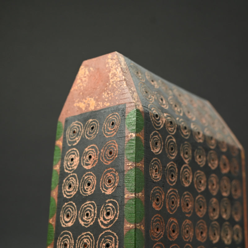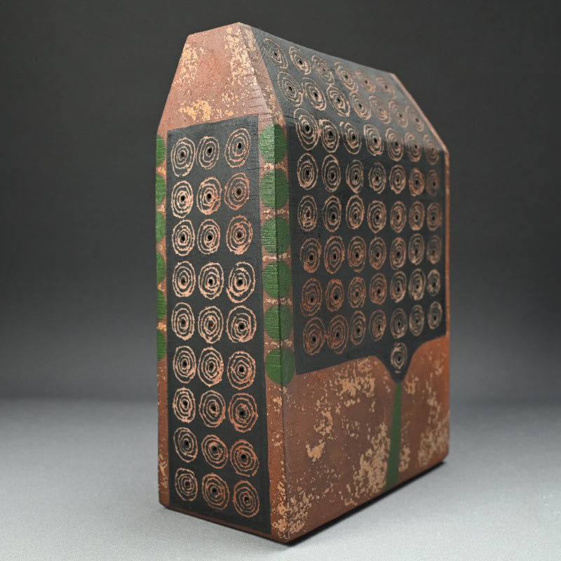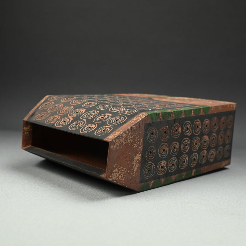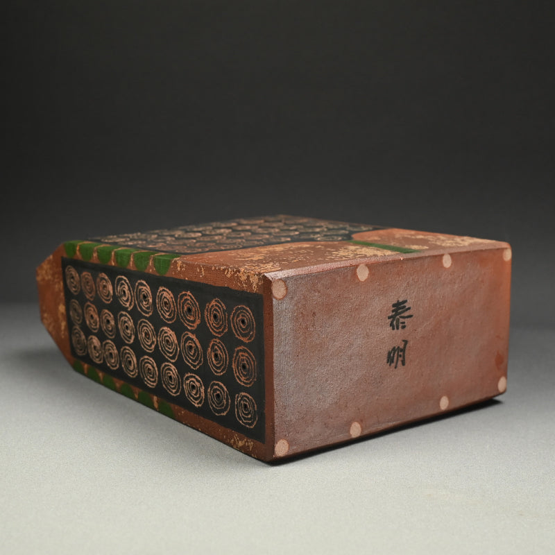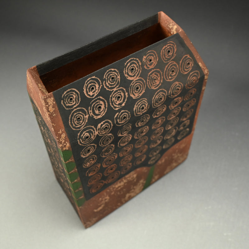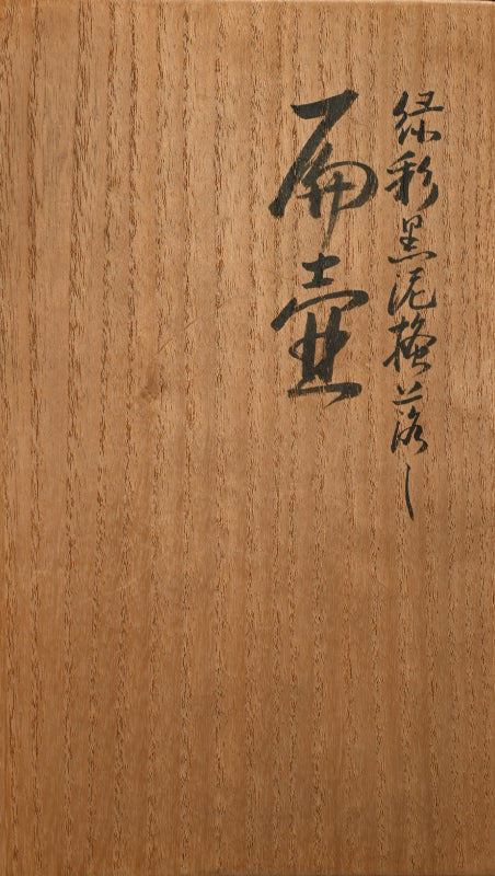 A very unusual early work by important modern artist Morino Taimei enclosed in the original signed wooden box titled Rokusai Kurode Kakiotoshi Henko. It is published in the book Nihon No Toji Gendai Hen (1993). The vessel is 25 x 12.5 x 34 cm (10 x 5 x 13-1/2 inches) and is in perfect condition.