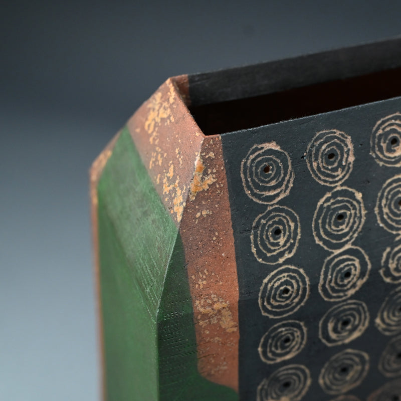 Henko Tsubo ―"日本の陶磁現代篇第7巻 緑彩黒泥掻落扁壺"