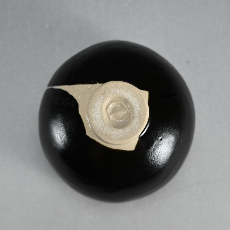 A striking tea bowl for use in the Japanese Maccha Tea Ceramony by Richard Milgrim covered in black with white accents enclosed in the original signed wooden box titled Hikidashi Guro Chawan. It is 13 cm (5-1/4 inches) diameter, 8.7 cm (3-1/2 inches) tall and in excellent condition, directly from the artist.