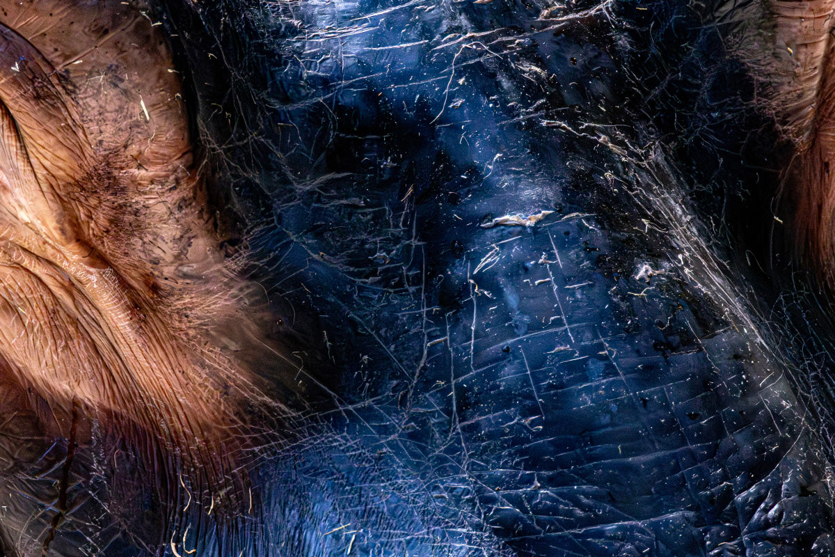 An extreme photograph of a Hippopotamus mounted as a hanging panel by Horitani Shoichi signed on back and numbered 1/15. It is 52.5 x 35 x 3 cm (21 x 14 x 1 inches) and is in perfect condition, mounted on a wooden panel elevated from the wall.
