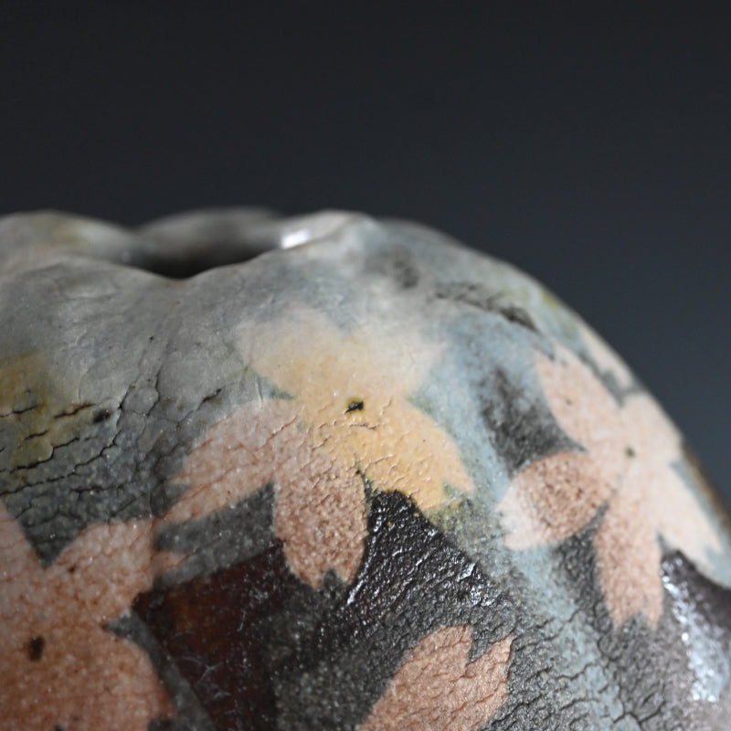 Huge Manyosai Flower Vase ー"万葉彩志野桜紋扁壺"