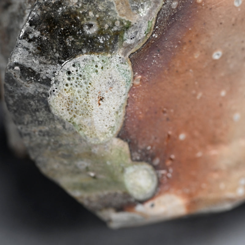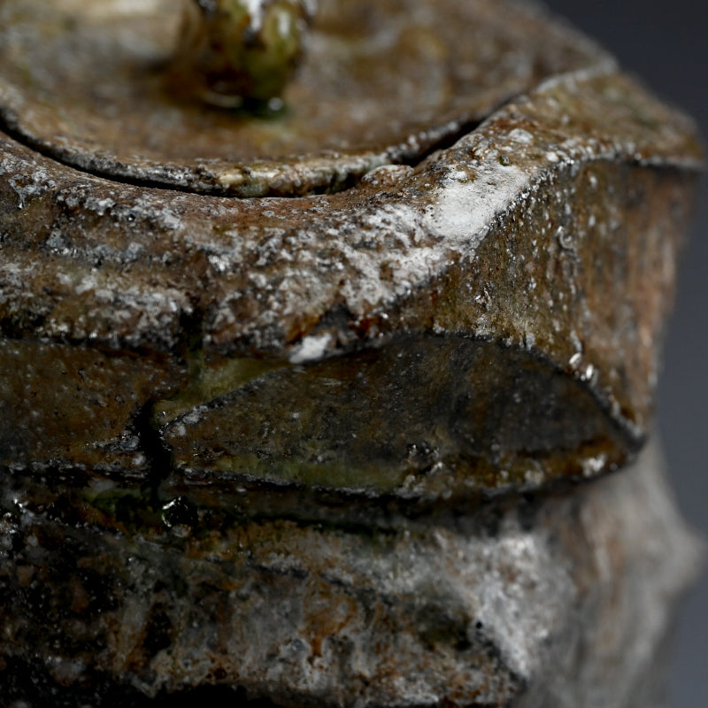 Atarashi Manabu has been growing in popularity as one of the leaders in the Iga pottery tradition since the first time I saw his work nearly 20 years ago when visiting the family showroom in Iga village. Born in 1973 in Osaka son of the second generation artist and one of the leading revivalists of the Iga tradition in post war Japan, Atarashi Kanji. He graduated the literature department of Kansai University in 1995, moving to apprentice under his father a few years later. In 2002 he built his first anagama Kiln, and held his first of a multitude of solo exhibitions. Intensely fired multiple times to achieve the bidoro glass puddles and landscape effects which define his aesthetic, the geometric works add a contemporary sensibility to the traditional Iga style and transcend the realm of utilitarian crafts breaking into the sculptural domain. His work has proven innovative and challenging to the norm, taking his fathers tradition into the 21st century.