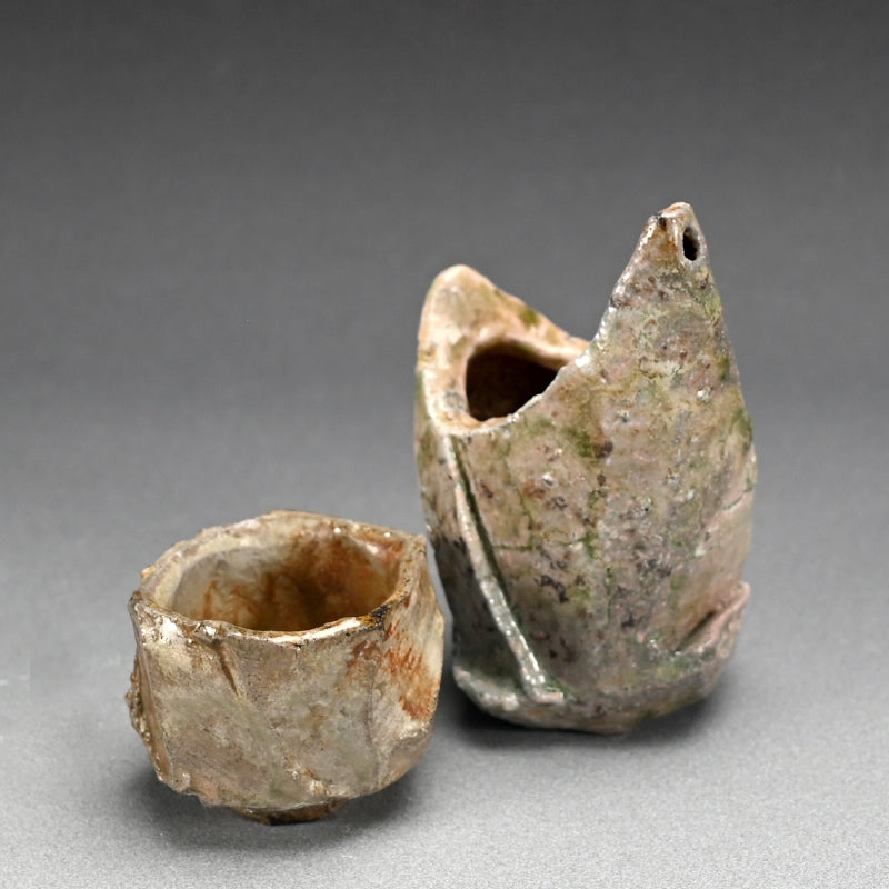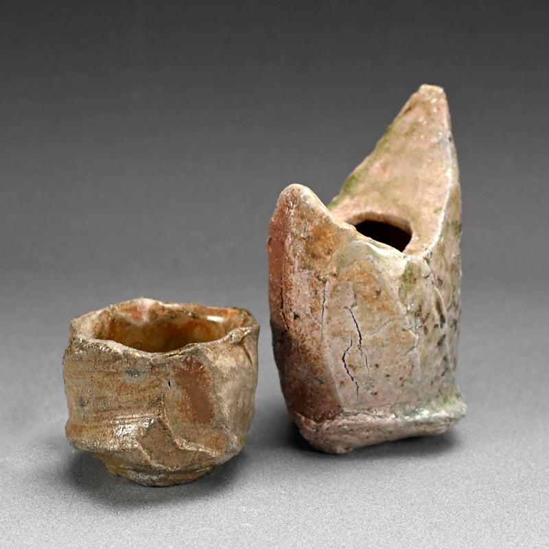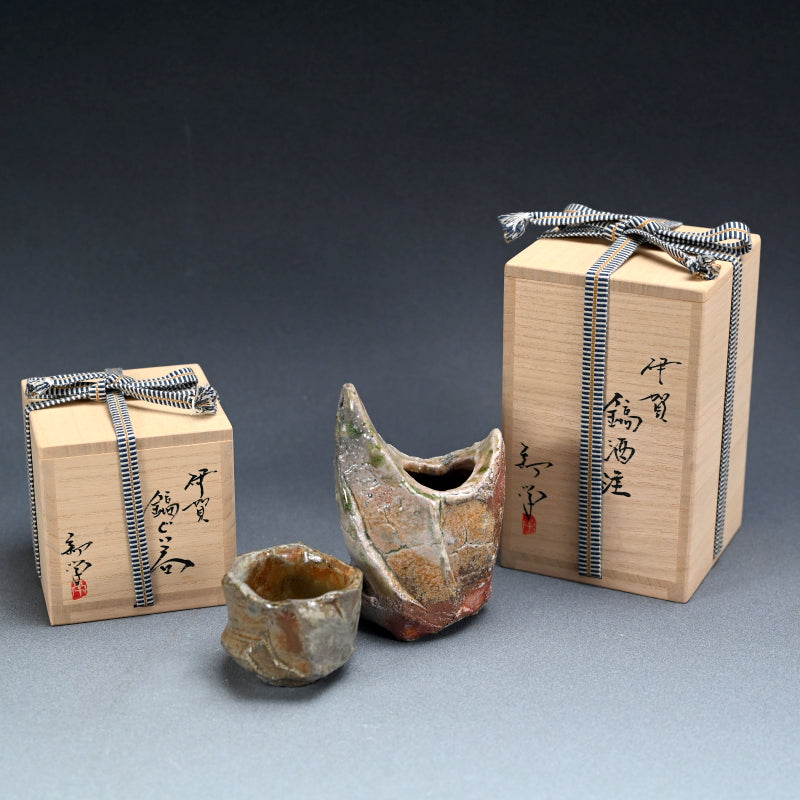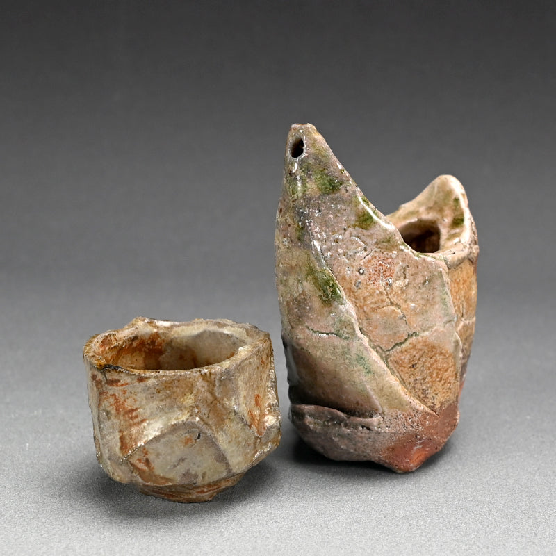 Iga Shinogi Sake Flask & Guinomi ー新 学 "伊賀 鎬酒注" "伊賀 鎬ぐい呑み"