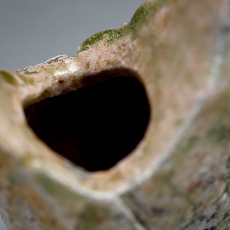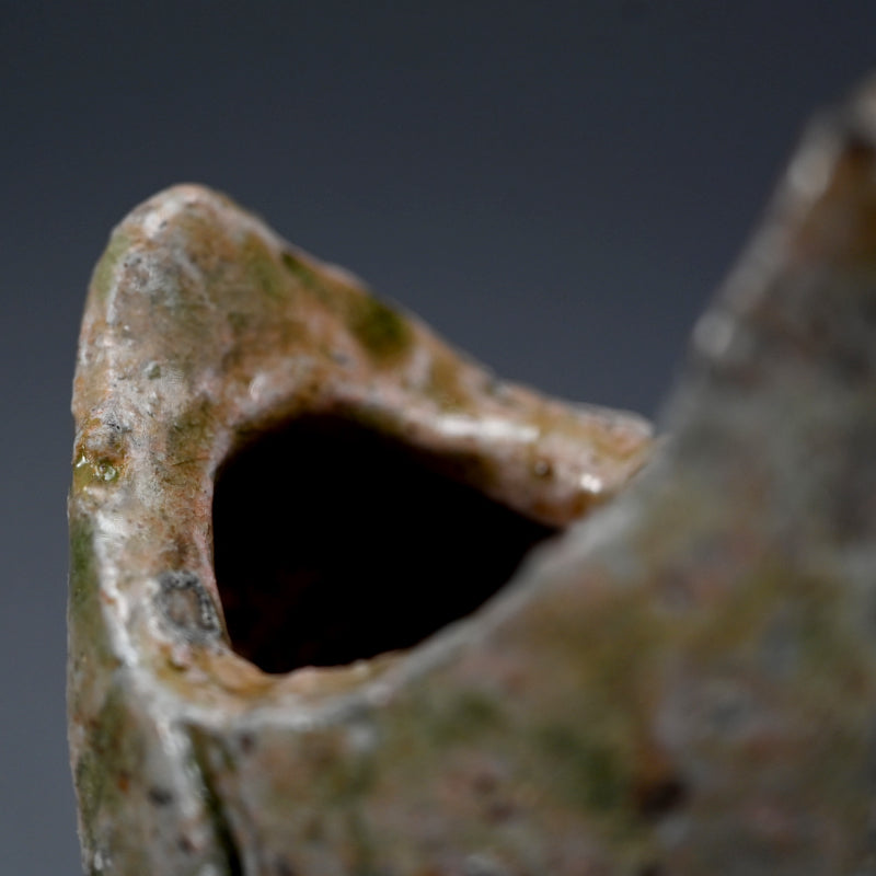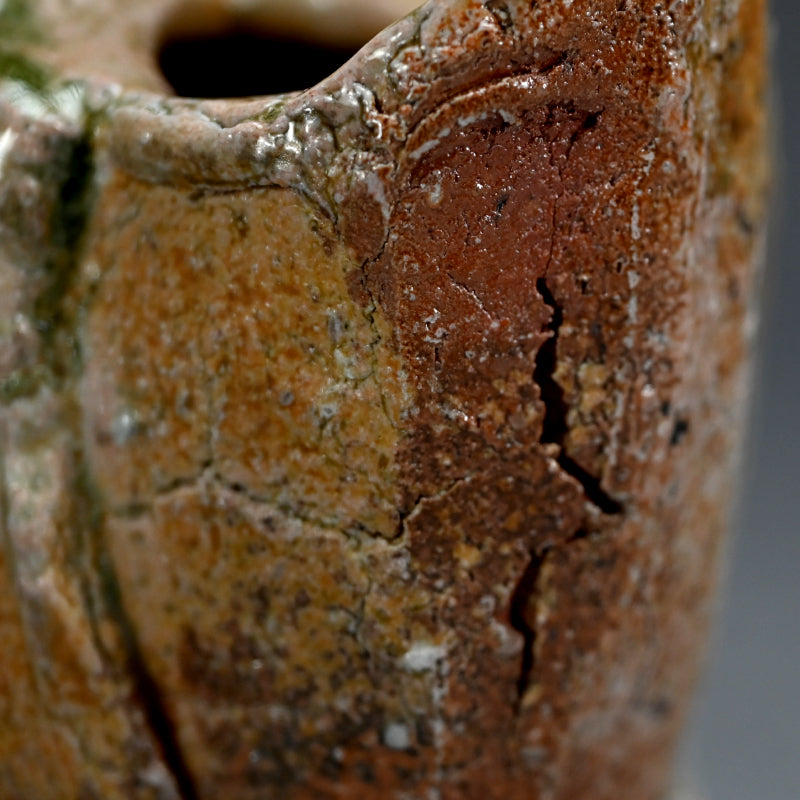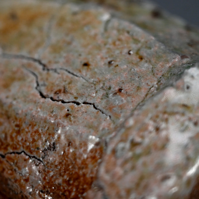 Atarashi Manabu has been growing in popularity as one of the leaders in the Iga pottery tradition since the first time I saw his work nearly 20 years ago when visiting the family showroom in Iga village. Born in 1973 in Osaka son of the second generation artist and one of the leading revivalists of the Iga tradition in post war Japan, Atarashi Kanji. He graduated the literature department of Kansai University in 1995, moving to apprentice under his father a few years later. In 2002 he built his first anagama Kiln, and held his first of a multitude of solo exhibitions. Intensely fired multiple times to achieve the bidoro glass puddles and landscape effects which define his aesthetic, the geometric works add a contemporary sensibility to the traditional Iga style and transcend the realm of utilitarian crafts breaking into the sculptural domain. His work has proven innovative and challenging to the norm, taking his fathers tradition into the 21st century.