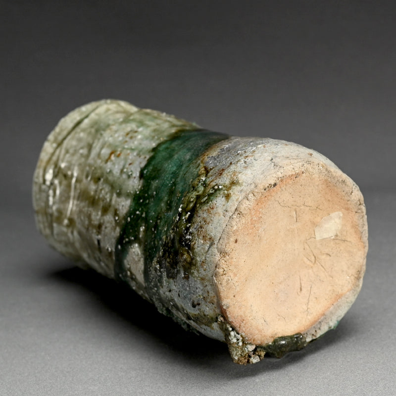 This cylinder has been flattened on three sides in a traditional Tea Room form by Furutani Michio and comes enclosed in the original signed wooden box titled Iga Sankaku Hanaire. It has received a heavy dousing of flying ash with some charring which truly expresses the sense of Wabi central to Japanese art. The vase is 13 cm (5-1/4 inches) diameter, 24 cm (9-1/2 inches) tall and is in excellent condition.