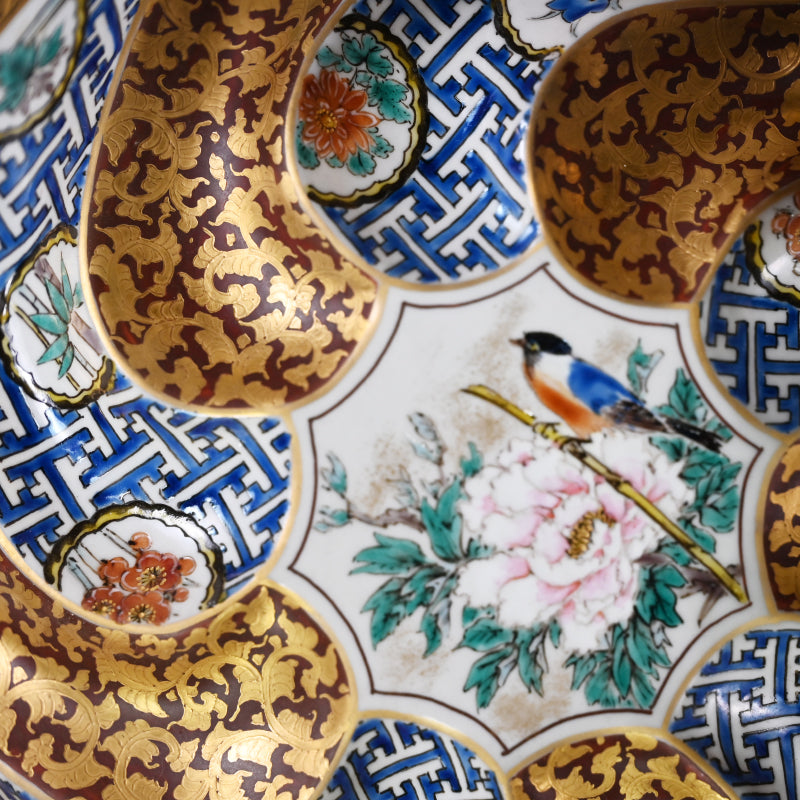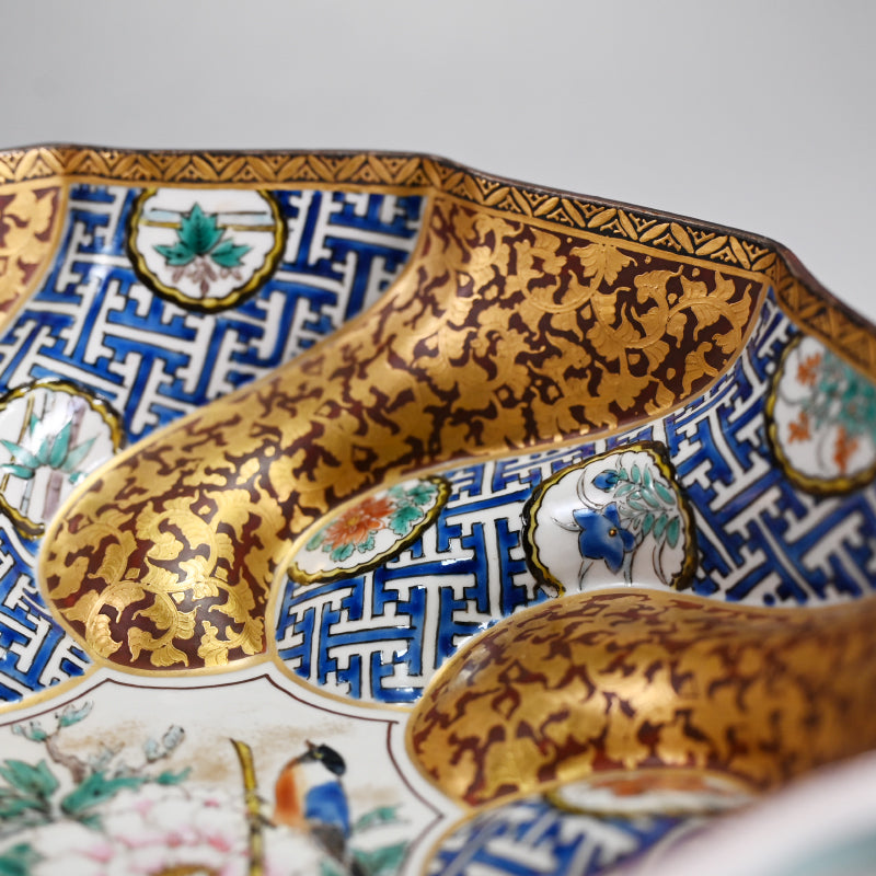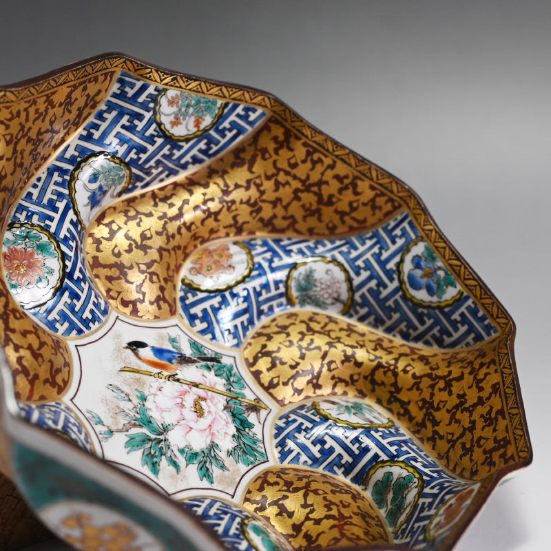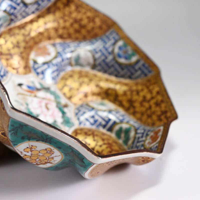 Incredible Kutani Bowl ー清水 翠東 "九谷焼 割取金蘭小紋 菓子鉢"