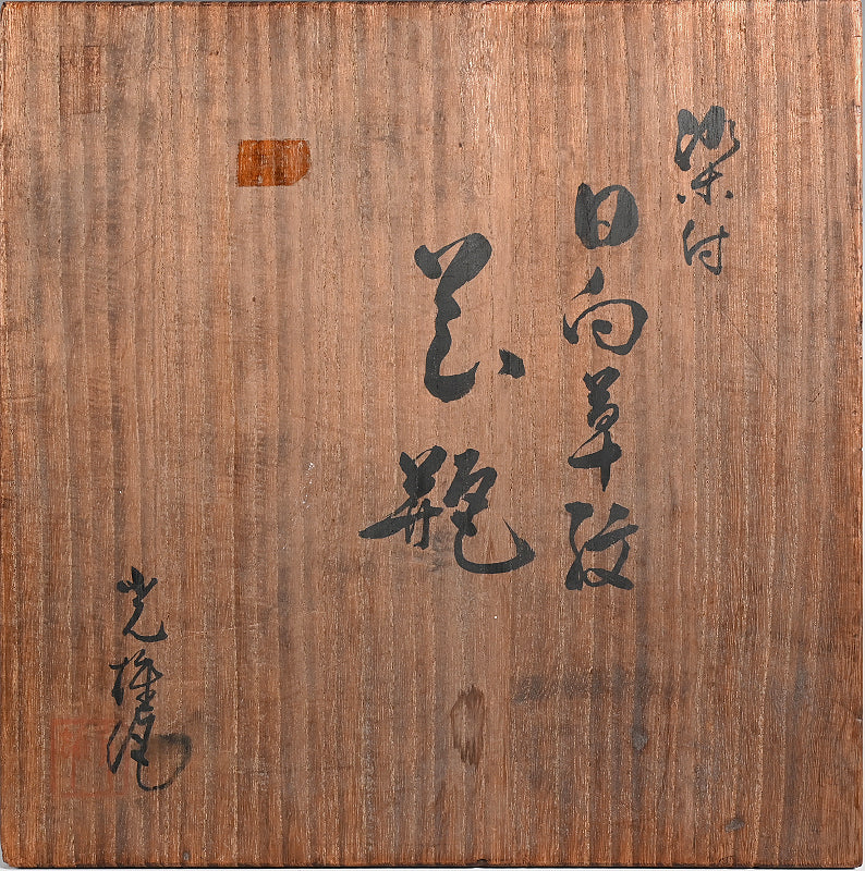 A large early 20th century blue and white vase from Kyoto enclosed in the original signed wooden box titled Hinata Kusamon Kabin and signed by the artist. It is 29 cm (11-1/2 inches) diameter, 33.5 cm !3-1/2 inches) tall and in excellent condition.