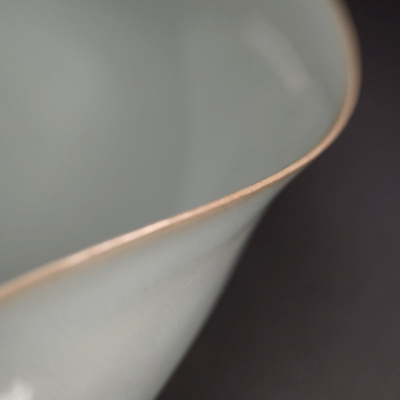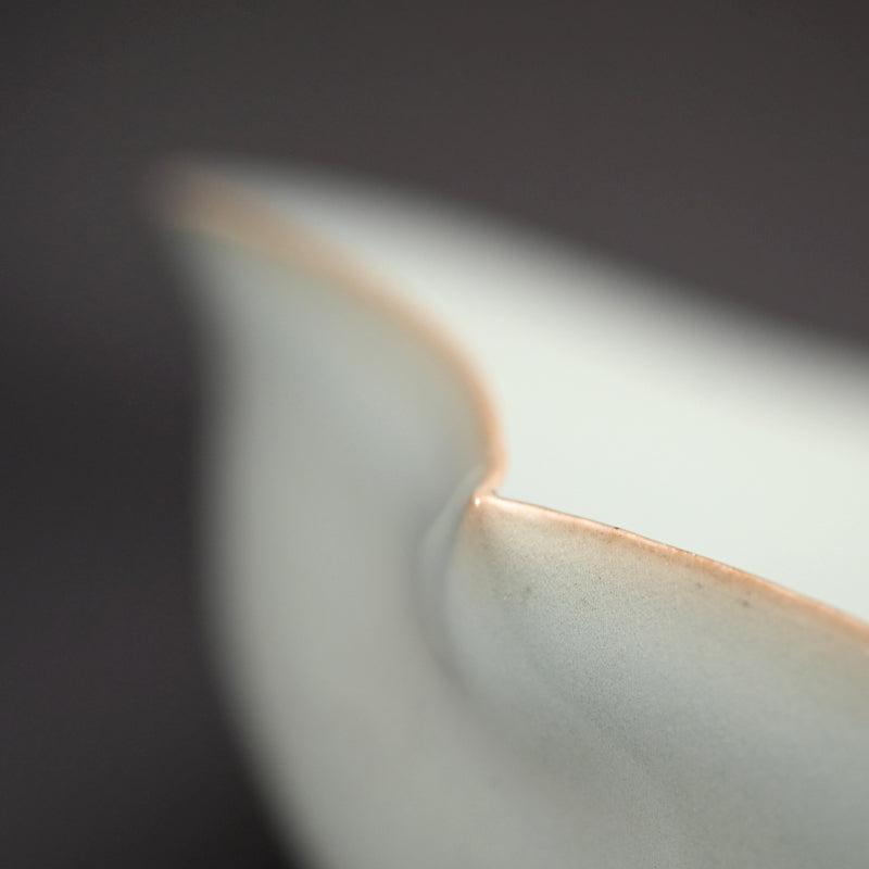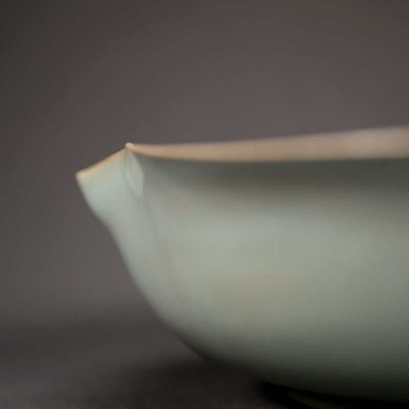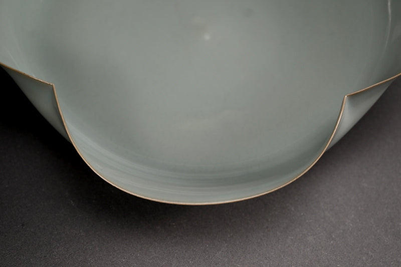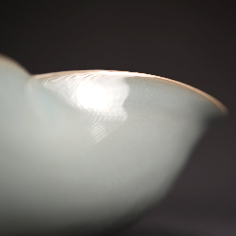 Kawase Shinobu was born in Oiso, Kanagawa Prefecture in 1950, heir to a family tradition of potting. His grandfather and father were Kawase Chikushun I and II respectively, masters of Chinese based ceramic styles. He began working with his father, and first came to public attention with his acceptance into the 1969 Nihon Dentō Kōgei Shinsakuten (National Traditional Crafts Exhibition for New Works). This was followed by acceptance into the 1974 Nihon Dentō Kogeiten (National Traditional Crafts Exhibition), at both of which he exhibited frequently. In 1980 he was selected for the Japan Ceramics Society Exhibition and was awarded there the following year. In 1983 his work was selected for the Japanese Ceramics Today exhibition at the Smithsonian Institution, Washington D.C. and the Victoria & Albert Museum, London. From then his works have been exhibited throughout the globe and he is regarded as Japan’s most outstanding celadon artist working with the traditions of the Tang and Song dynasties. With his exquisite technique, organic forms and pristine glazes, he has developed a unique style that is both traditional and challenging and it is this fusion of contemporary and tradition which draws droves to his art. Work is held in the Victoria and Albert Museum (London), New York Metropolitan Museum of Art, San Francisco Asian Art Museum, Art Institute of Chicago, Minneapolis Institute of Arts, Cincinnati Art Museum, Denver Art Museum, Brooklyn, Birmingham Cleveland, New Orleans, Philadelphia and Saint Louis Museums of Art among others. There is a plethora of information available on this innovative artist, including: Japanese Ceramics Today: Masterworks from the Kikuchi Collection, (Tsuji, Tomo, Hayashiya, 1983), Modern Japanese Ceramics in American Collections (Frederick Baekeland and Robert Moes, 1993), Quiet Clarity “RIN” Beauty in Contemporary Ceramics (1996), Contemporary Clay: Japanese Ceramics for the New Century (Joe Earle, 2005), The Betsy and Robert Feinberg Collection: Japanese Ceramics for the Twenty first Century (Mintz, 2014), and or Into the Fold: Contemporary Japanese Ceramics from the Horvitz Collection (Harn Museum, 2015)
