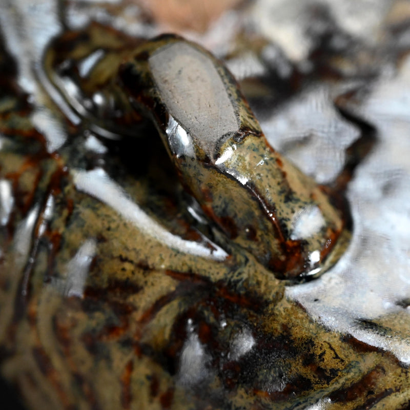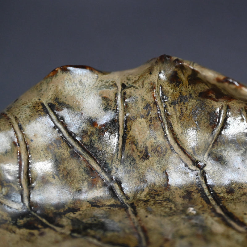 Lotus leaf Basin with Frog ー土楽庵 八田 蘇岳 “蓮葉形 水盤”