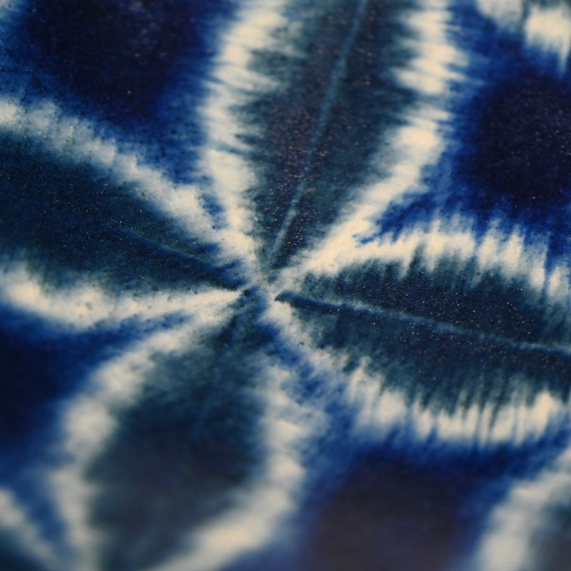 A stunning work reminiscent of shibori textiles on the outside, kasuri inside, by Fukushima Hiroko enclosed in the original signed wooden box titled Guse-e Ao-mon Rinkabachi. It is 44.5 x 37 x 17 cm (18 x 15 x 7 inches) and is in perfect condition, directly from the artist.
