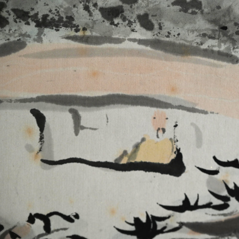 Shirakura Kinichiro (Niho or Jiho, Kanyu, 1896-1974) was born in Niigata, and initially was inducted into Nanga under Hatta Goro. Moving to Tokyo he began studies of Western oil painting following Ishii Hakutei. However, that was unfulfilling, and he soon moved to Kyoto, returning to the Nanga style under Tanabe Chikuson (also Tajika/Tachika Chikuson, 1864-1922). Following the death of Chikuson, he moved to Tokyo where he took up residence in the studio of Komura Suiun. He was consistently displayed at both the Teiten-Nitten National Exhibitions as well as the Nihon Nanga –In Ten. Like other individualistic artists of his generation, he was known for his very unique and easily discernible style and enjoyed immense popularity. He later changed his name to Kanyu. He was recognized in an English book published in 1958 as one of the most important artists to visit when in Japan.