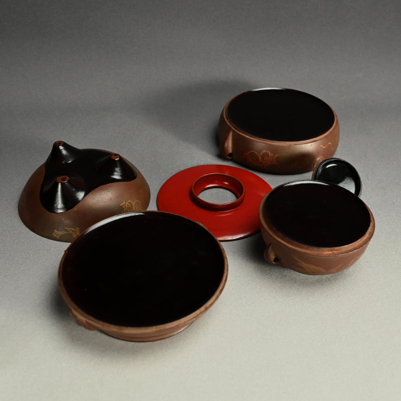 Meiji Tea-Set-Shaped Dry-Lacquer Stacking Food Box ー塗風炉釜形菓子器
