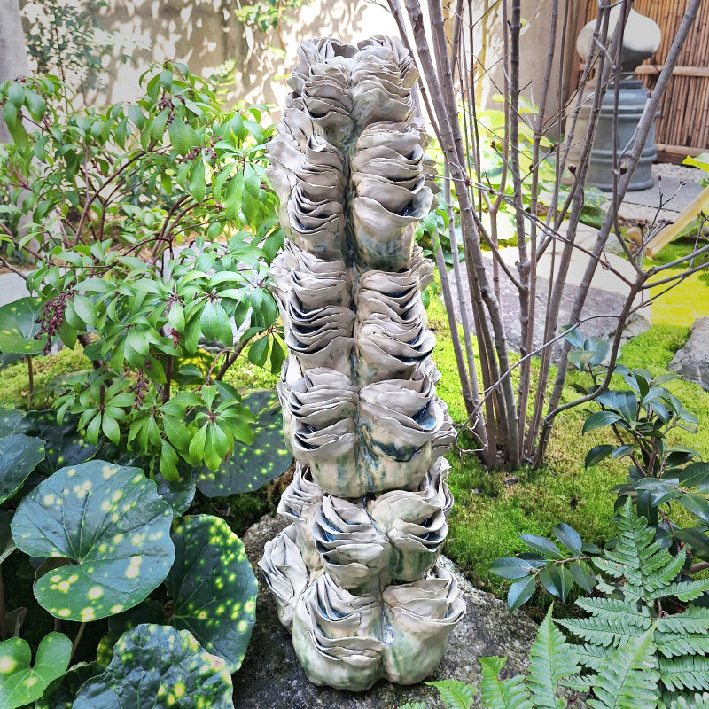 Yamaguchi Mio was born in Aichi prefecture in 1992, and graduated advanced studies at the Aichi University of Education in 2017. While still at university, her works were selected for show at the JoryuTogei Ten Female Ceramic Artist Association Exhibition (2014). In 2016 she was awarded at the 3rd Kogei in Kanazawa Competition, Grand Prize at the Ceramic Art in the Present Tense Exhibition at the Hagi Uragami Museum as well received the governors prize at the 5oth Female Ceramic Artist Association Exhibition. In 2017 she was selected for the 11th International Ceramics Competition in Mino. She took a job as a teacher, but could not fight the need to create, so enrolled in the Tajimi City Ceramics research facility, graduating in2020. Her work is currently on view in the Chicago Institute of Arts, and was featured on the cover of the catalog for that exhibition, Radical Clay.