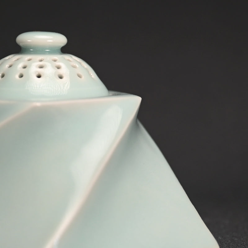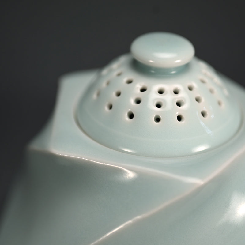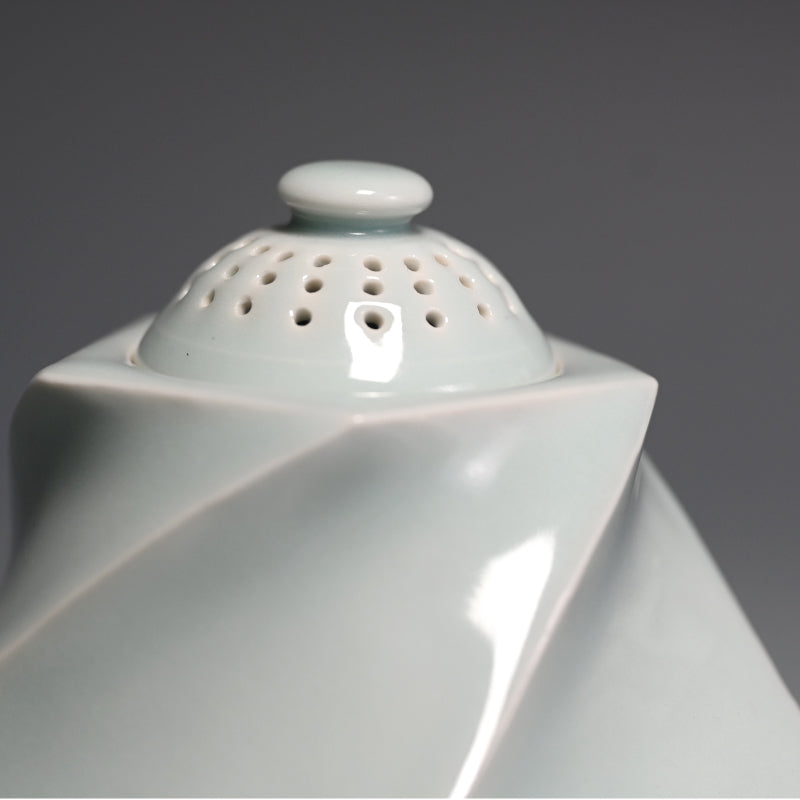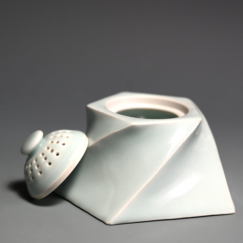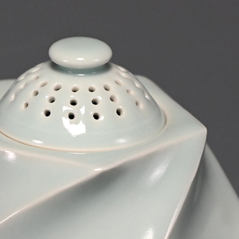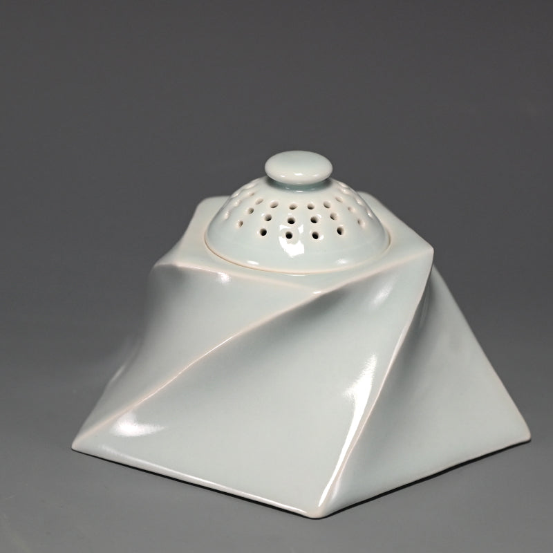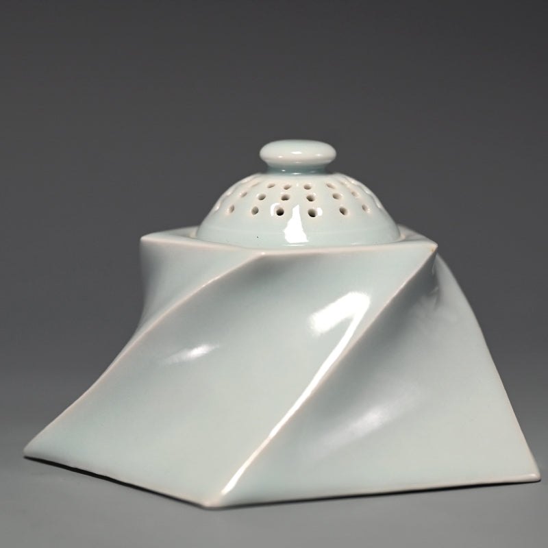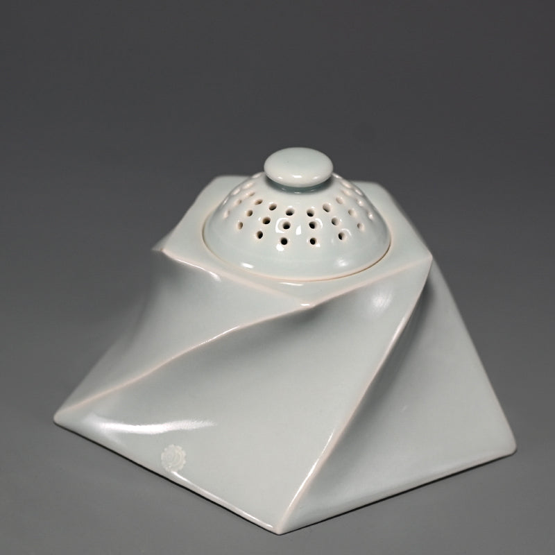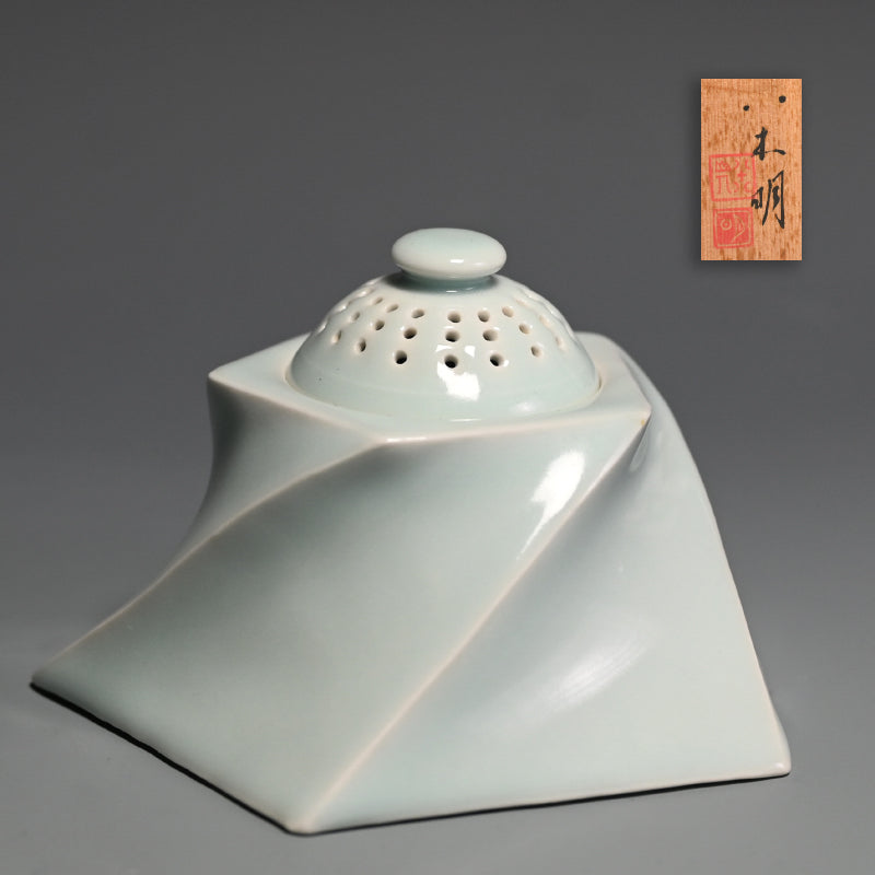 A challenging elegant form capped with a pierced lid by Yagi Akira enclosed in the original signed wooden box titled Koro (Incense Burner). It is 13 cm (5-1/4 inches) diameter, 8.5 m (3-1/4 inches) tall and enclosed in the original signed wooden box.