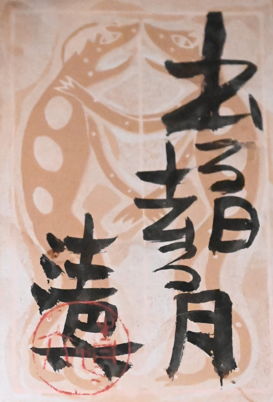 Nomura Seiroku was born in 1916 as the fourth son of a farming family in Yamanashi Prefecture. During his childhood, he was entrusted to relatives and spent his time drawing late into the night while working at a cotton mill. At the age of 17, he persuaded his parents and relatives to let him move to Tokyo, where he took on various jobs while attending the night school at Kawabata Art Academy where he formed lifelong friendships with other painteers such as Iwasaki Hajin, Komatsu Hitoshi, and Taniguchi Sango. He sought mastery of the Tsuketate technique. which involves using a rough brush held vertically to create a strong brushstroke that carves the framework of the painting without sketching.In 1943, Seiroku was drafted into the Yokosuka Navy. Around the same time, he married Tokiko Nomura, a daughter from an old family in Komatsu City, Ishikawa Prefecture, whom he had met during his art school days. As a result, he adopted the Nomura surname. In the early years of their marriage, Seiroku had little income, so in 1951, at the age of 35, he made a decisive move to focus on his artistic direction. He left his family and relocated to a cabin by Shibireko Lake in Yamanaka, Yamanashi Prefecture. There, he spent four ascetic years perfecting his "Tsuketate" technique. During this period, Nomura began creating cover illustrations for the haiku magazine "Kira" and held his first solo exhibition in Yamanashi Prefecture. He also showcased his works at various exhibitions, including the Shinseisaku Art Society Exhibition and the Japan Independent Exhibition. In 1955, after returning to his family in Komatsu City, he moved his studio to Kashiwa City, Chiba Prefecture, to facilitate exhibitions and negotiations with art dealers in Tokyo. In the 1960s, Nomura produced outstanding works using flat and thick painting techniques. From the 1970s onwards, his brushwork became more free and spontaneous, and he began incorporating his own haiku into his paintings, evolving towards a more literati painting style. Work by him is held in the Tokyo National Museum of Modern Art, the Wakayama Prefectural Museum of Art and the Yamanashi Prefectural Museum of Art where a major retrospective was held in 2000.