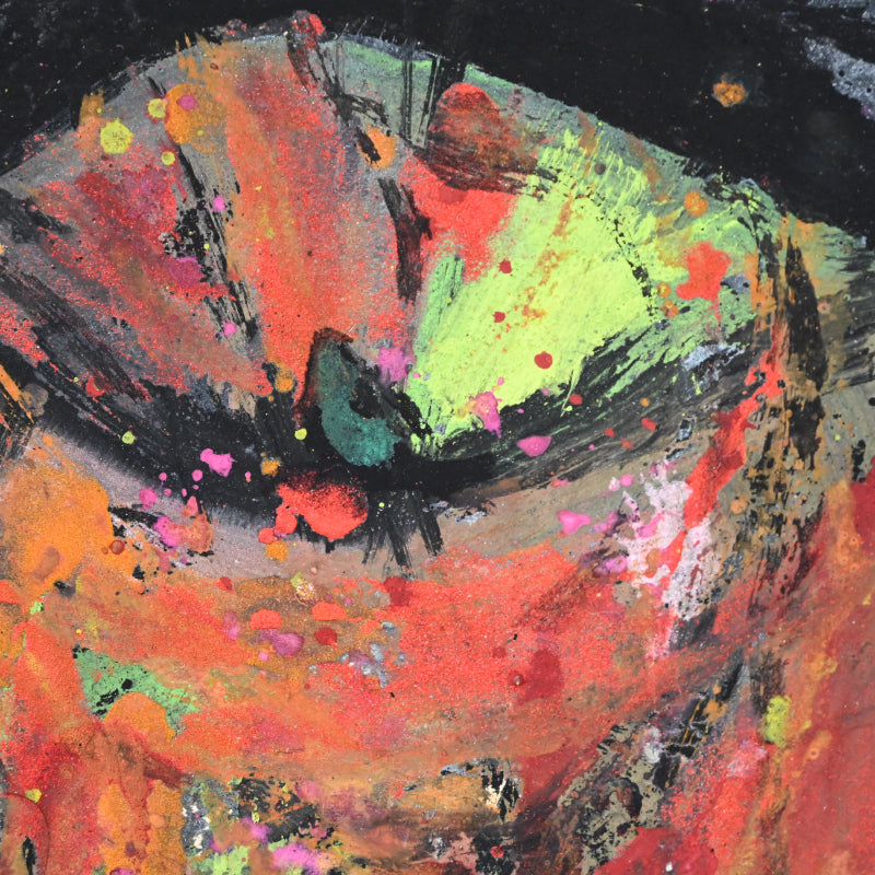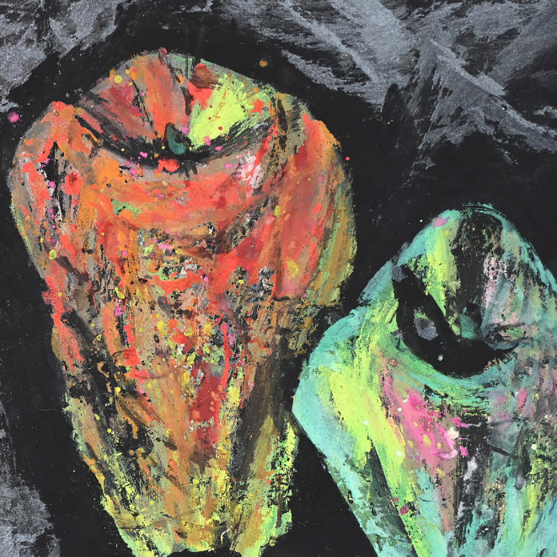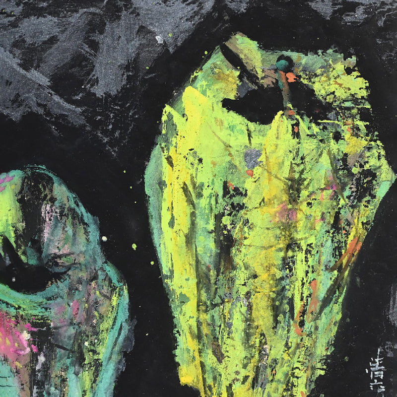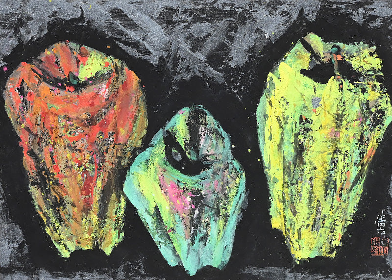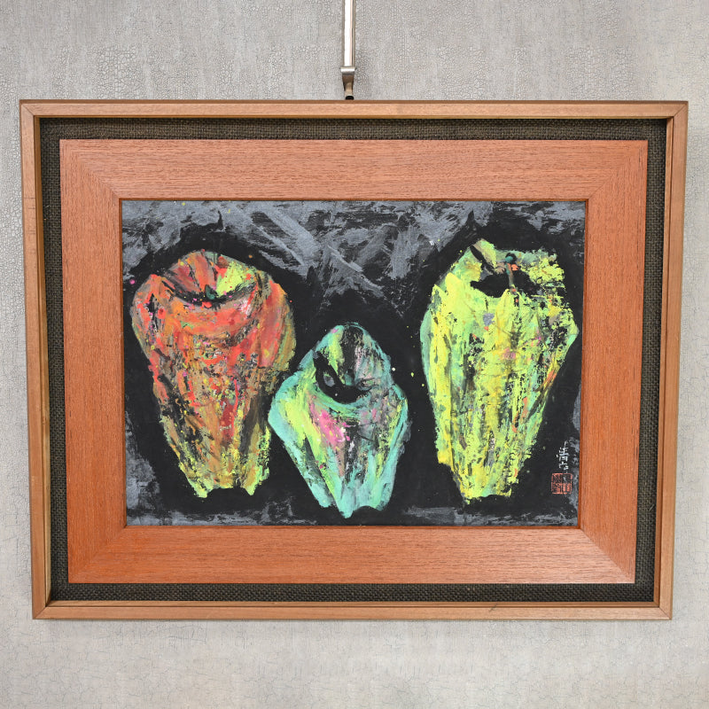 Nomura Seiroku was born in 1916 as the fourth son of a farming family in Yamanashi Prefecture. During his childhood, he was entrusted to relatives and spent his time drawing late into the night while working at a cotton mill. At the age of 17, he persuaded his parents and relatives to let him move to Tokyo, where he took on various jobs while attending the night school at Kawabata Art Academy where he formed lifelong friendships with other painteers such as Iwasaki Hajin, Komatsu Hitoshi, and Taniguchi Sango. He sought mastery of the Tsuketate technique. which involves using a rough brush held vertically to create a strong brushstroke that carves the framework of the painting without sketching.In 1943, Seiroku was drafted into the Yokosuka Navy. Around the same time, he married Tokiko Nomura, a daughter from an old family in Komatsu City, Ishikawa Prefecture, whom he had met during his art school days. As a result, he adopted the Nomura surname. In the early years of their marriage, Seiroku had little income, so in 1951, at the age of 35, he made a decisive move to focus on his artistic direction. He left his family and relocated to a cabin by Shibireko Lake in Yamanaka, Yamanashi Prefecture. There, he spent four ascetic years perfecting his "Tsuketate" technique. During this period, Nomura began creating cover illustrations for the haiku magazine "Kira" and held his first solo exhibition in Yamanashi Prefecture. He also showcased his works at various exhibitions, including the Shinseisaku Art Society Exhibition and the Japan Independent Exhibition. In 1955, after returning to his family in Komatsu City, he moved his studio to Kashiwa City, Chiba Prefecture, to facilitate exhibitions and negotiations with art dealers in Tokyo. In the 1960s, Nomura produced outstanding works using flat and thick painting techniques. From the 1970s onwards, his brushwork became more free and spontaneous, and he began incorporating his own haiku into his paintings, evolving towards a more literati painting style. Work by him is held in the Tokyo National Museum of Modern Art, the Wakayama Prefectural Museum of Art and the Yamanashi Prefectural Museum of Art where a major retrospective was held in 2000.