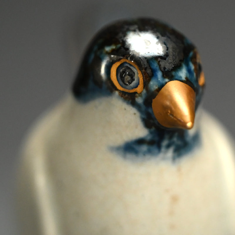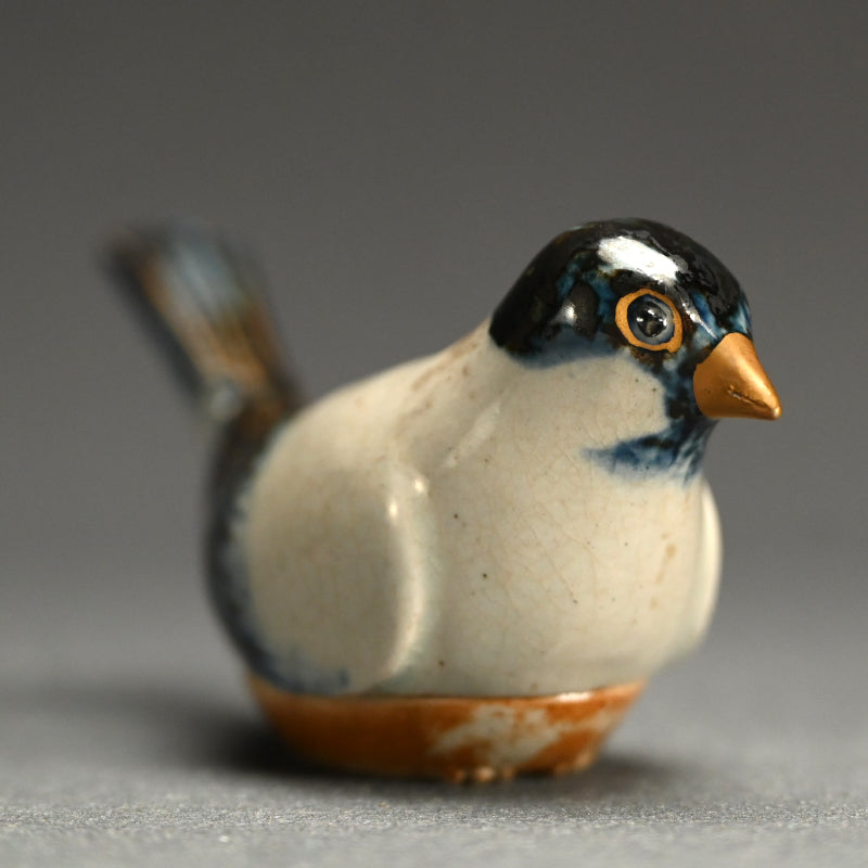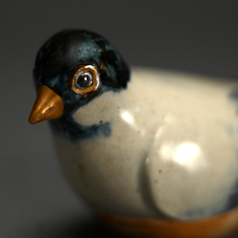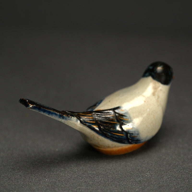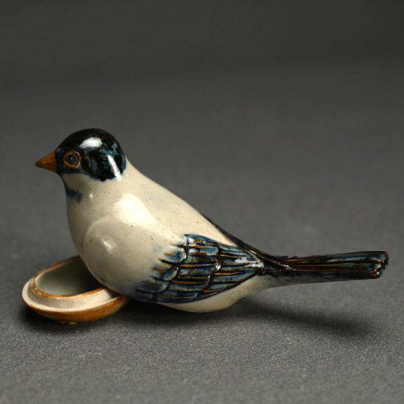 A small nesting Skylark with long tail opens to reveal a storage compartment for incense, a Kogo by Miyagawa (Makuzu) Kozan enclosed in the original signed wooden box titled Ninsei Utsushi Kogo Hibari. It is 11.3 x 3.9 x 5 cm (4-1/2 x 2-1/2 x 2 inches) and is in excellent condition.