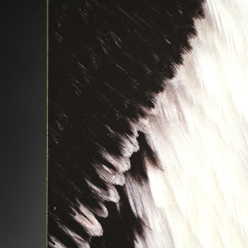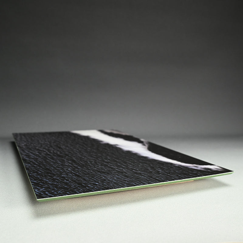An extreme photograph of a Penguin mounted as a hanging panel by Horitani Shoichi signed on back and numbered 1/15. It is 36 x 53.5 x 3 cm (14-1/2 x 21-1/2 x 1 inches) and is in perfect condition, mounted on a wooden panel elevated from the wall.