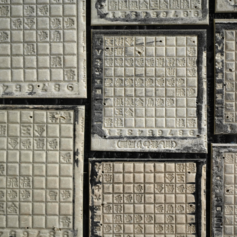 Museum Exhibited Newspaper Printing Flong Collage ー野村 耕 “作品(将棋盤)”