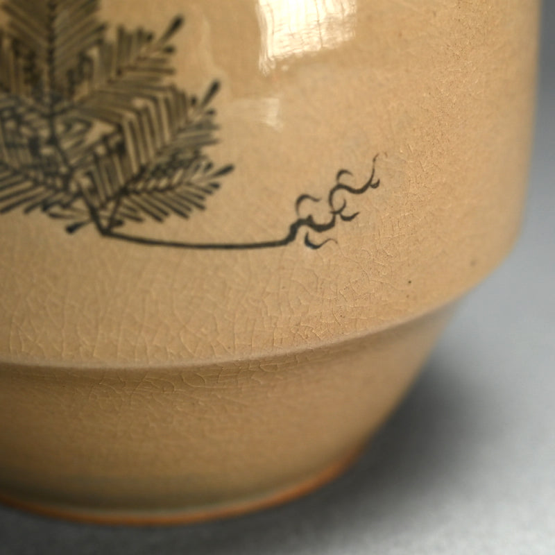 Fushina (also Fujina sometimes simply called Izumo-yaki) was the Goyogama clan kiln of the Matsudaira of Matsue in modern day Izumo. The origin of Fushina lies in the early Edo period, when the second generation Matsudaira Tsunataka requested a Hagi ware potter from the neighboring Mori clan, which was eventually granted to the third generation Izumo leader Matsudaira Tsunachika around 1677. The founders of the kiln were Kurasaki Gonbei and Kada Hanroku. Although under continuous production, the kiln had its ups and downs until it was strongly revived by the 8th Lord of Matsue, Matsudaira Harusato (Fumaiko 1751-1818) Daimyo of the province. From then it fell strongly under his aesthetic taste. Flagging in the late 19th century, artists such as the great scholar and Nanga artist Tanomura Chokunyu sought to revitalize it, and came to Shimane to decorate the works or to teach decoration and painting techniques. It became an important influence on the Mingei movement and was visited by Bernard Leach, Hamada Shoji and Kawai Kanjiro in the early 20th century.