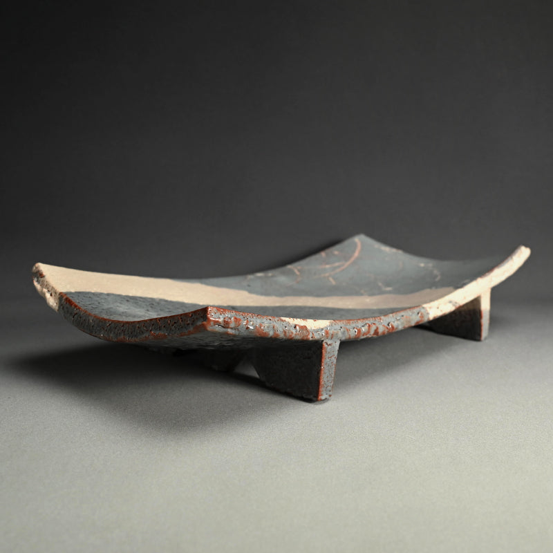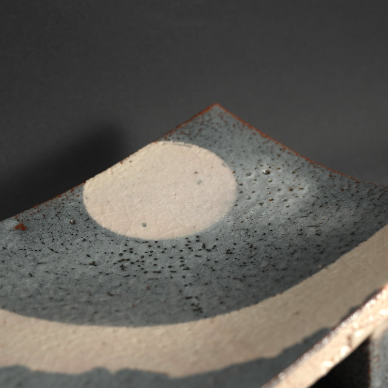 Wakao Toshisada was born in Tajimi, Gifu prefecture, home of Mino pottery, in 1933. He was first recognized at the New Crafts exhibition of 1960, the same year he was first exhibited at the Central Japan Art Exhibition. Three years later he made his debut at the Asahi Ceramics Exhibition, following in 1965 with the National Traditional Crafts Exhibition. In 1971 he first exhibited with the Nihon Togeiten (All Japan Ceramics Exhibition) and was awarded the following year the New Mino Artists Prize, gathering acclaim as a leader in the field. After many domestic and international exhibits, he was awarded the Kato Kohei prize in 1986. and was recipient of the prestigious Japan Ceramics Society (JCS) Award in 1989. He was named an intangible cultural asset of Tajimi city in 1995, and of Gifu Prefecture in 2003, and works by the artist are held in the Museum of Modern Art Tokyo, V&A, Freer Gallery and Sackler among many others.