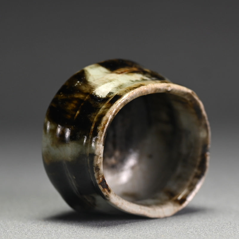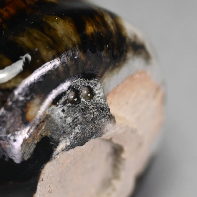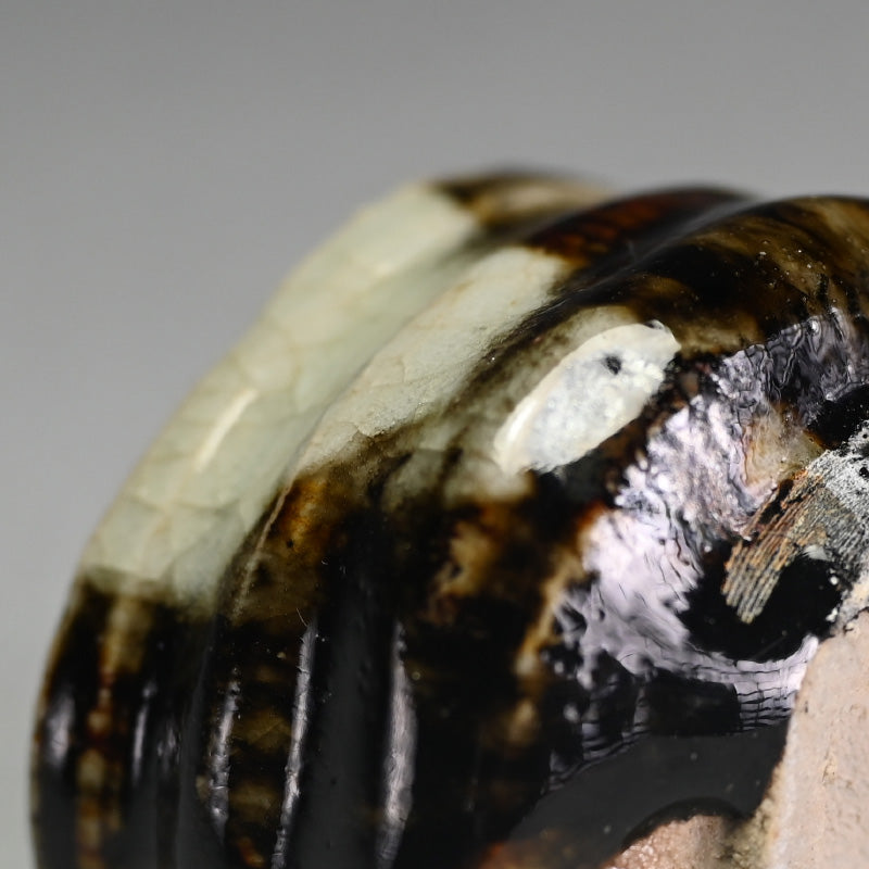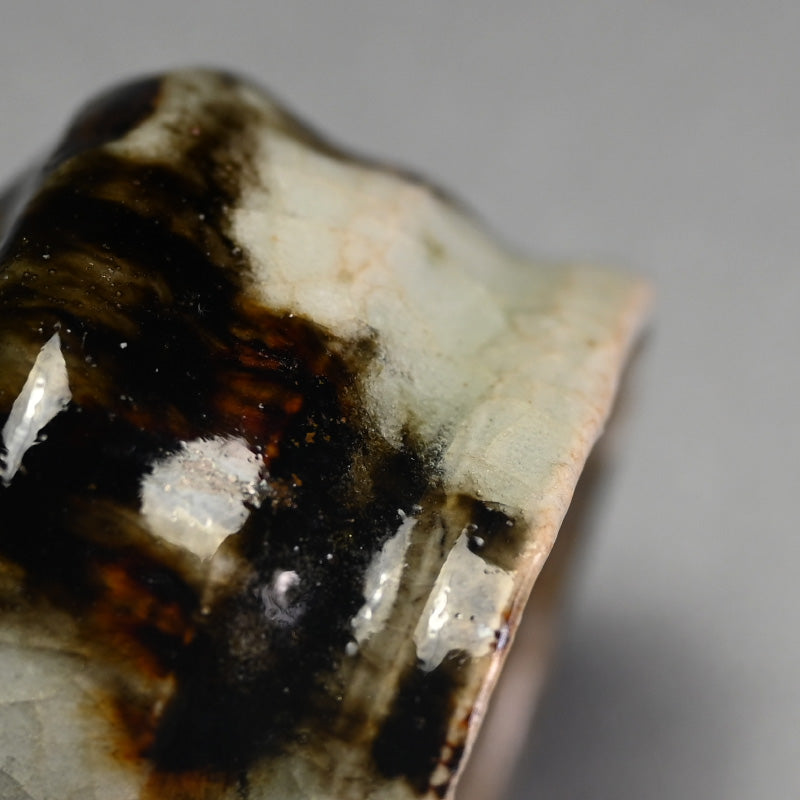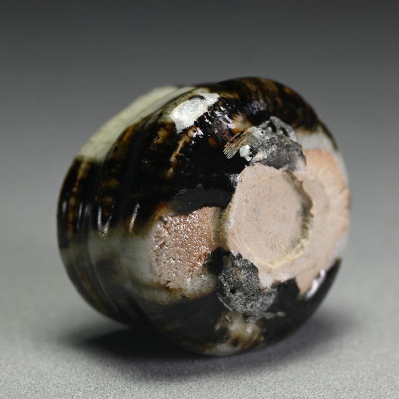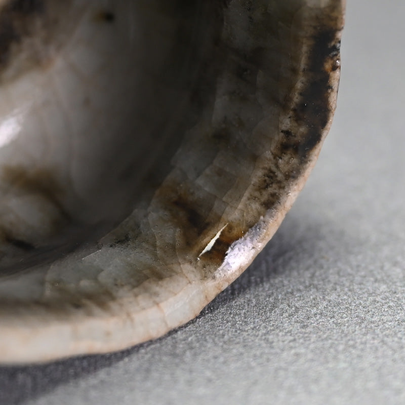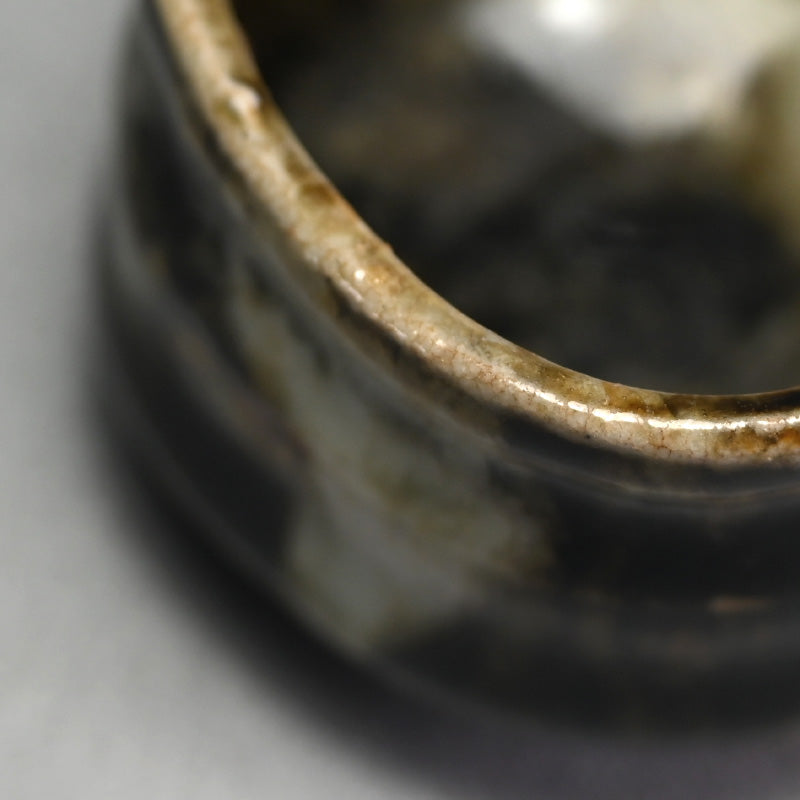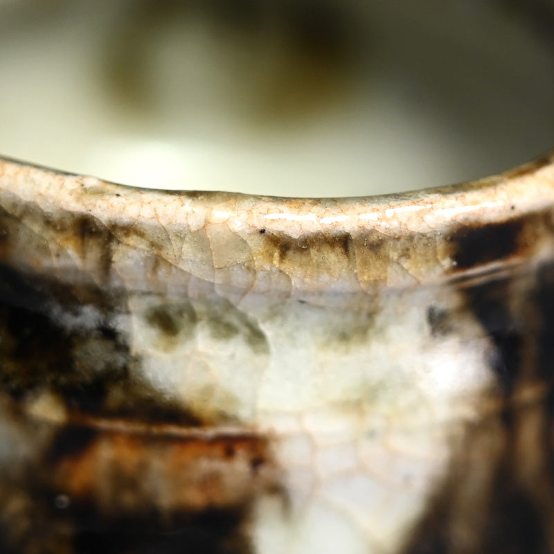 Ohmae Satoru was born in Osaka in 1972. He began decorating Kenzan style pottery in Kobe in 1991 with his brother. It was in 1994 he began making Nanban style unglazed pottery. His first solo exhibition was held in Osaka in 1999, and he moved to Shigaraki in 2001 where he began working on Iga and Shigaraki style wood-fired pottery and at the same time began holding solo exhibitions nationwide. He built a fully underground anagama kiln in 2003 but became interested in glazed pottery in 2005 and began creating white porcelain and Karatsu ware. In 2007, he was attracted to Korean pottery from the Joseon Dynasty and started experimenting with Ido tea bowls and persimmon calyx tea bowls using anagama kiln firing techniques. After absorbing many styles, he reached a turning point in 2010, when he moved to Awaji Island and built a semi-underground anagama kiln and a raku kiln. He started making black raku ware. In 2016, he began using clay from Awaji Island to make white raku ware.