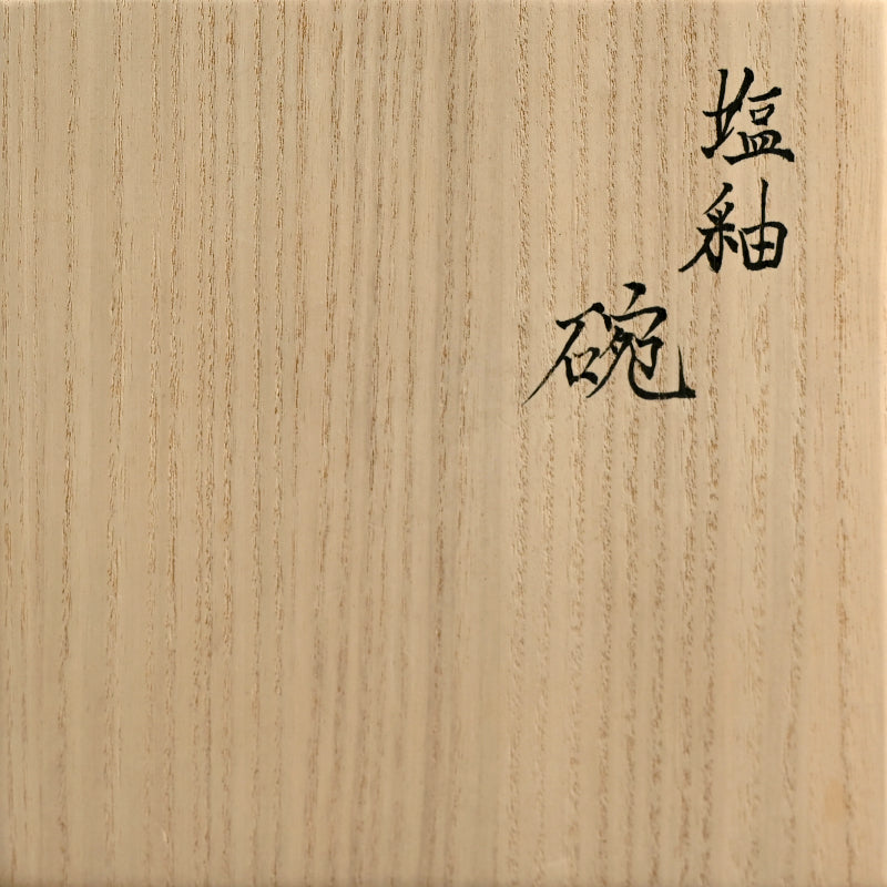 A spectacular bowl by Ajiki Jun enclosed in the original signed wooden box titled Shio-yu Wan. It is 13 cm (over 5 inches) diameter, 10.5 cm (4 inches) tall and in excellent condition.