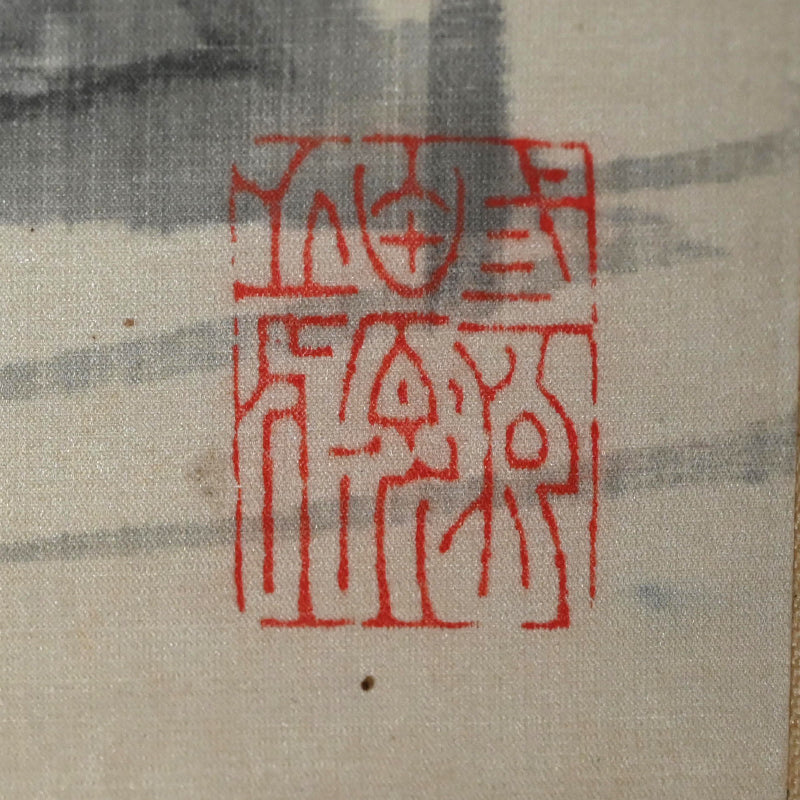 A stunning set of scrolls depicting lotus by Watanabe Shoka beautifully performed with pale ink on satin, an unusual and highly prized material. The image of the flower in blossom is wet, the ink allowed to seep into the soft material creating a lush feeling, while the seasonally later image of the seed pod is brushed in a dryer manner, as if the artist himself were the season, his brush the progression of time. The two scenes are mounted in fine patterned silk with white piping and large turned dark wood rollers, enclosed in a custom-made period wood box. They are 36.5 x 202 cm (14-1/2 x 79-1/2 inches) each and in overall excellent condition.